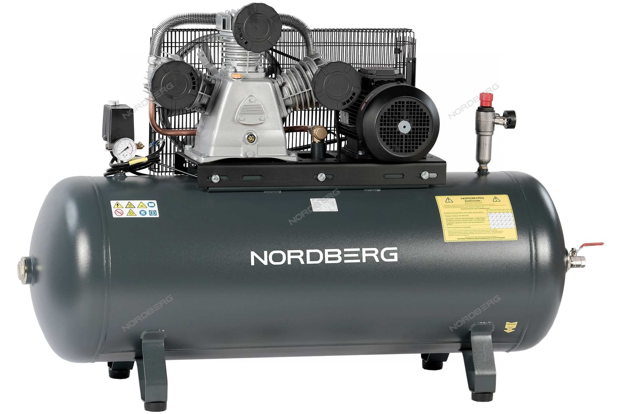 2 встроенных манометра для контроля давление внутри и на выходе ресивера
