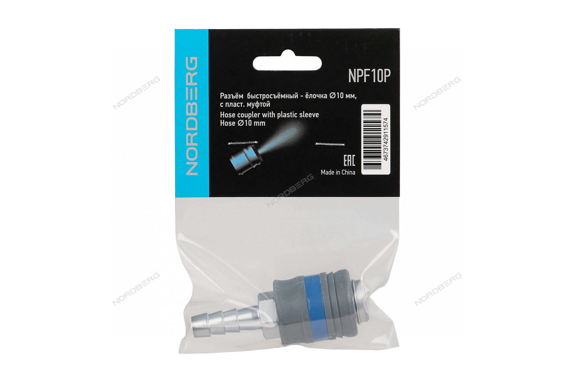 Разъем "мама" быстросъемный с пластиковой муфтой NORDBERG NPF10P с елочкой диаметром 10 мм.