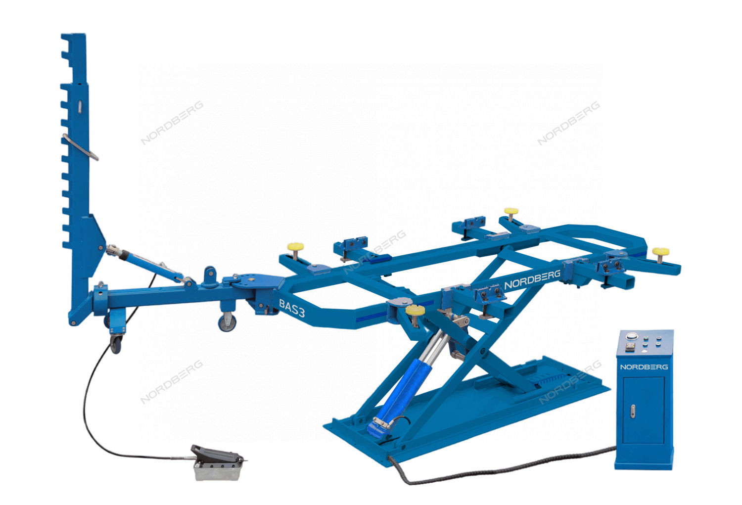 Рамный стапель с одной башней NORDBERG BAS3 используется для восстановления геометрии кузовов легковых автомобилей и внедорожников.
