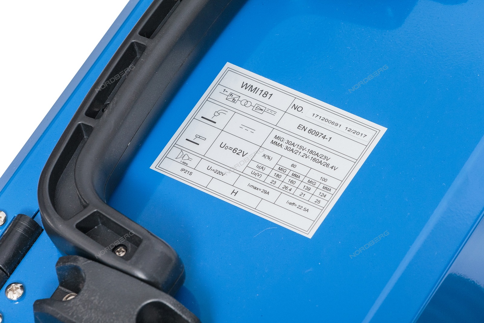 АППАРАТ СВАРОЧНЫЙ инверторный MIG/MAG +MMA NORDBERG WMI181 (220V)