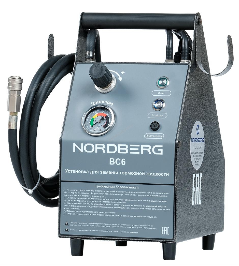 Установка электрическая для прокачки тормозной системы и системы сцепления Nordberg BC6. Емкость бака 5 л. Удаление и замена жидкости в большинстве типов и моделей тормозных систем автомобилей. Подходит для тормозных систем легковых автомобилей и легких грузовиков