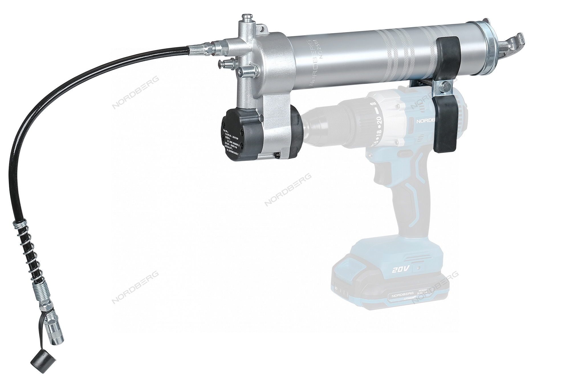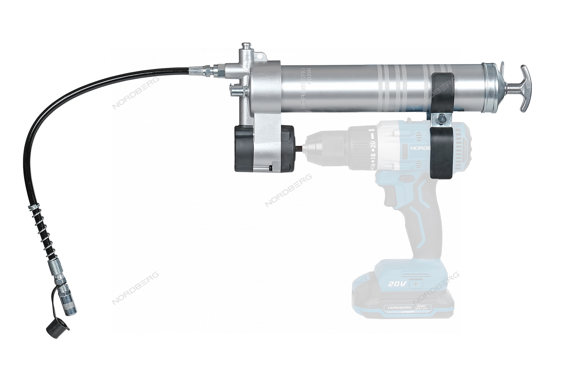 Шприц-насадка на шуруповерт, плунжерный для густой смазки, 400мл NORDBERG NO2501