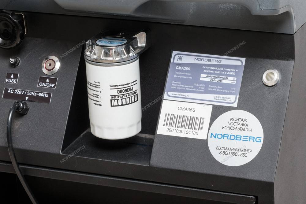 Автоматическая установка Nordberg CMA35S предназначена для полной замены масла автоматических трансмиссий за короткий промежуток времени с минимальным участием оператора. Максимальная точность замены масла обеспечивается тем, что замена производится не по объему, а по весу масла с помощью встроенных высокоточных весов. Это позволяет не контролировать различную производительность насосов АКПП, разницу в температуре между старым и новым маслом, и полностью исключает нарушение технологии замены масла и человеческий фактор. После замены масла увеличивается срок службы АКПП.