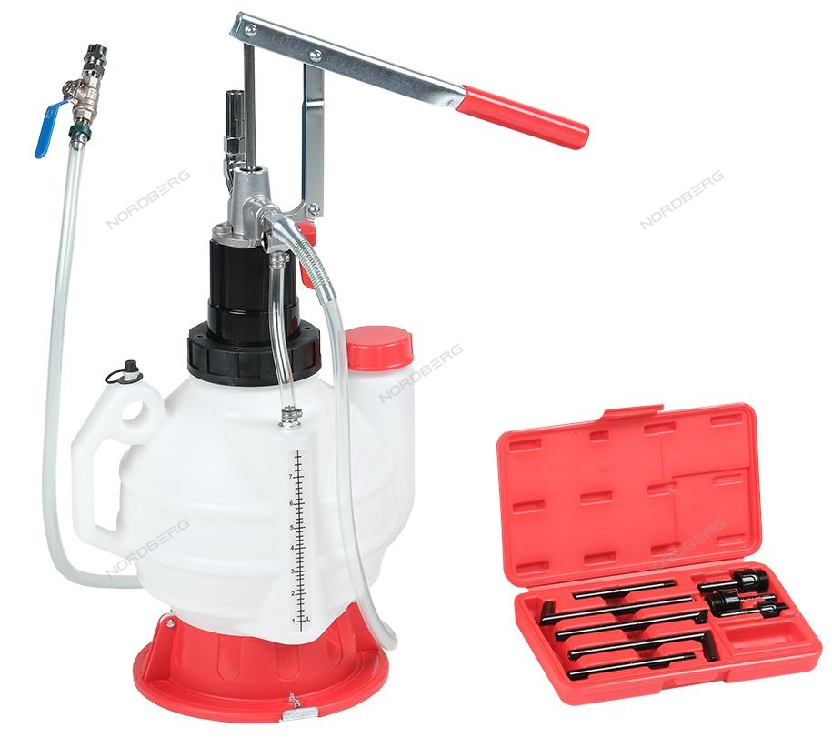 Набор для ручной замены масла в АКПП, 9 предметов NORDBERG N4007K. Предназначен для заправки маслом АКПП (автоматическая коробка переключения передач). Применяется в автосервисах и на станциях технического обслуживания.