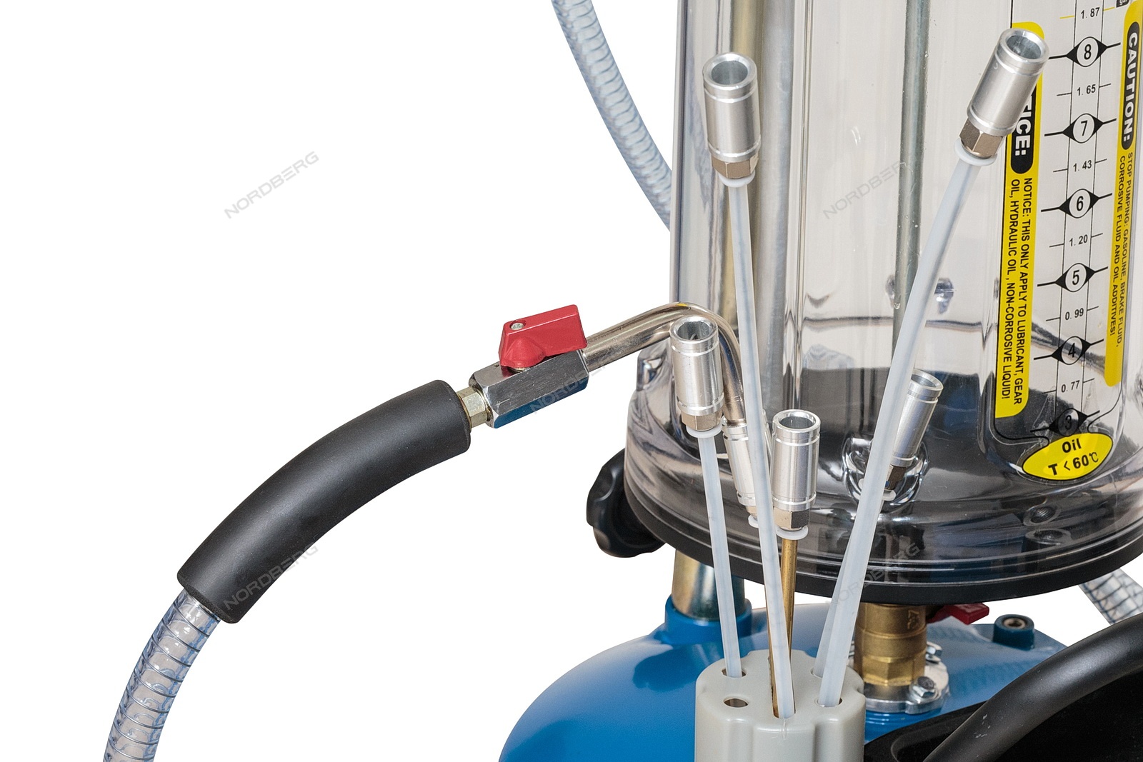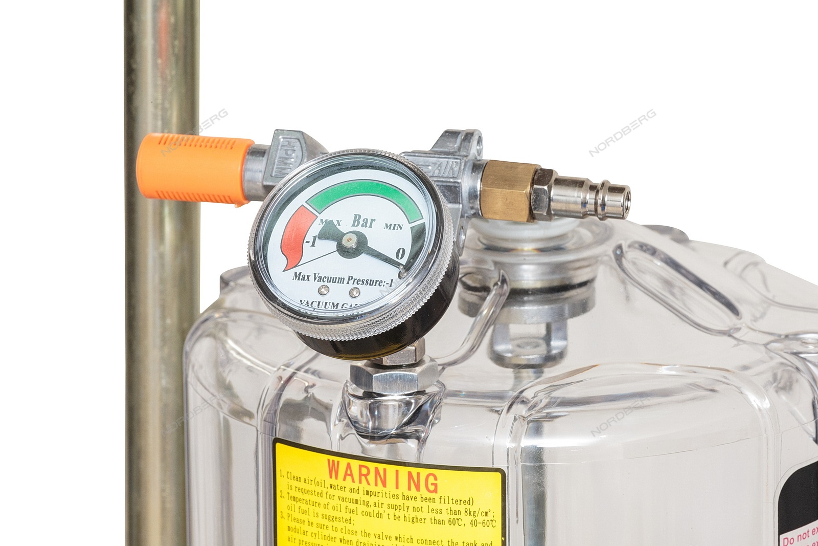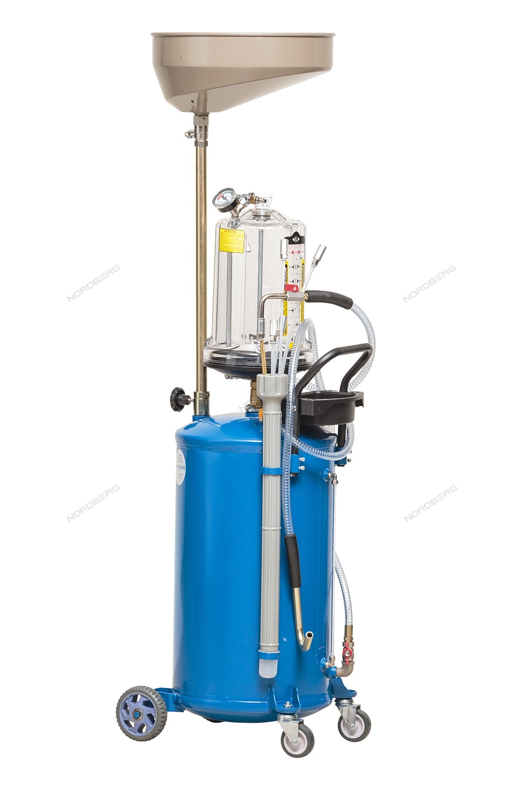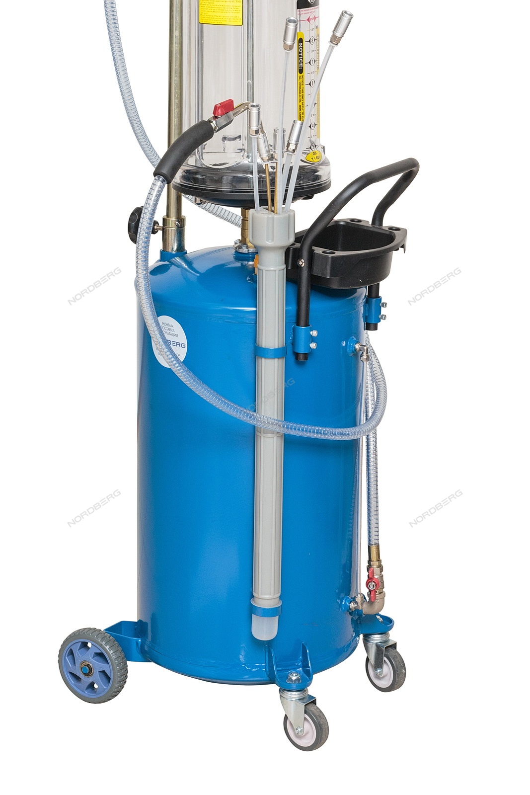 Установка для замены масла NORDBERG (2379) 2379B предназначена для удаления отработанного масла и других жидкостей из любого транспортного средства при помощи вентури-вакуумной вытяжной системы или свободным сливом.