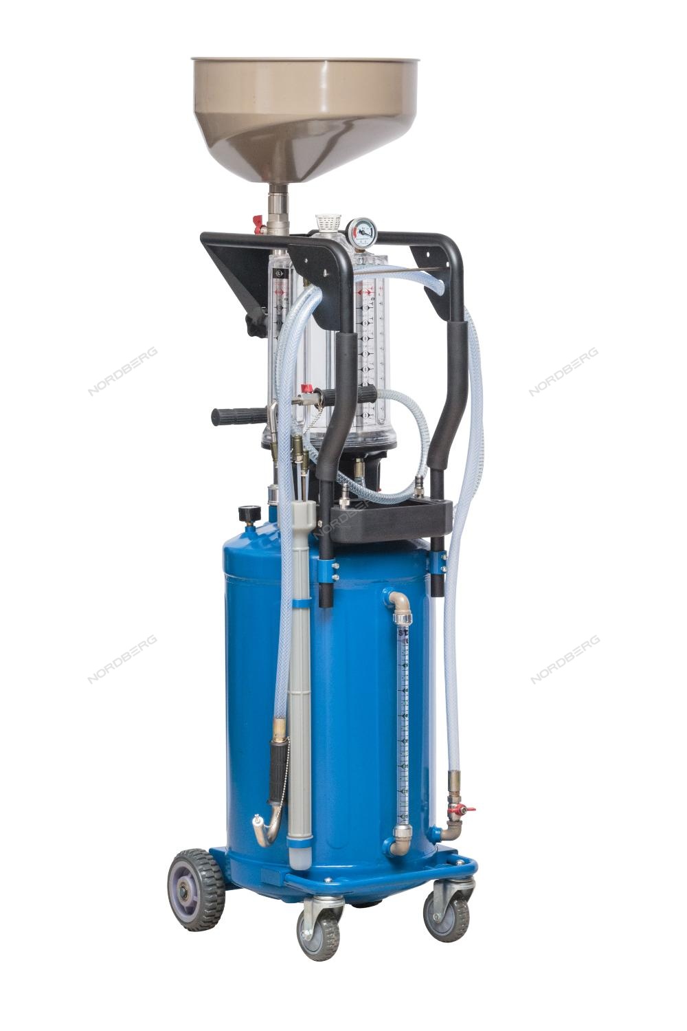 Установка для замены масла NORDBERG (2380) 2380B удаляет отработанное масло и другие жидкости из любого транспортного средства при помощи вентури-вакуумной вытяжной системы.
