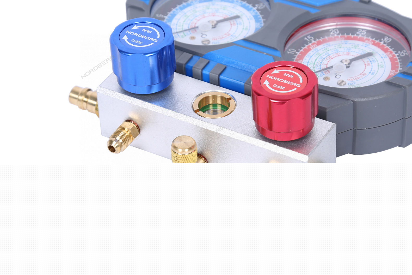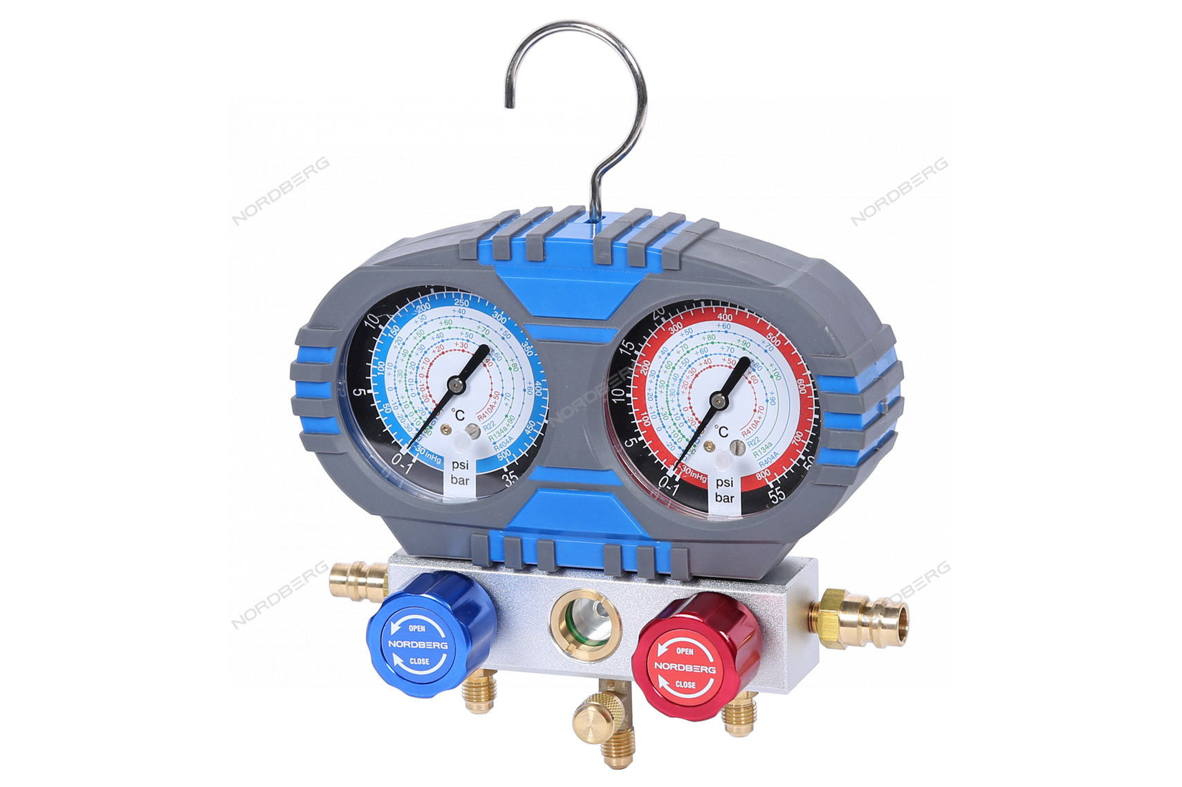 Манометрическая станция NORDBERG NFG32 – специальный прибор, позволяющий специалистам в области холодильного оборудования проводить точные измерения давления и пр., а также упрощать процесс обслуживания и настройки систем кондиционирования воздуха.