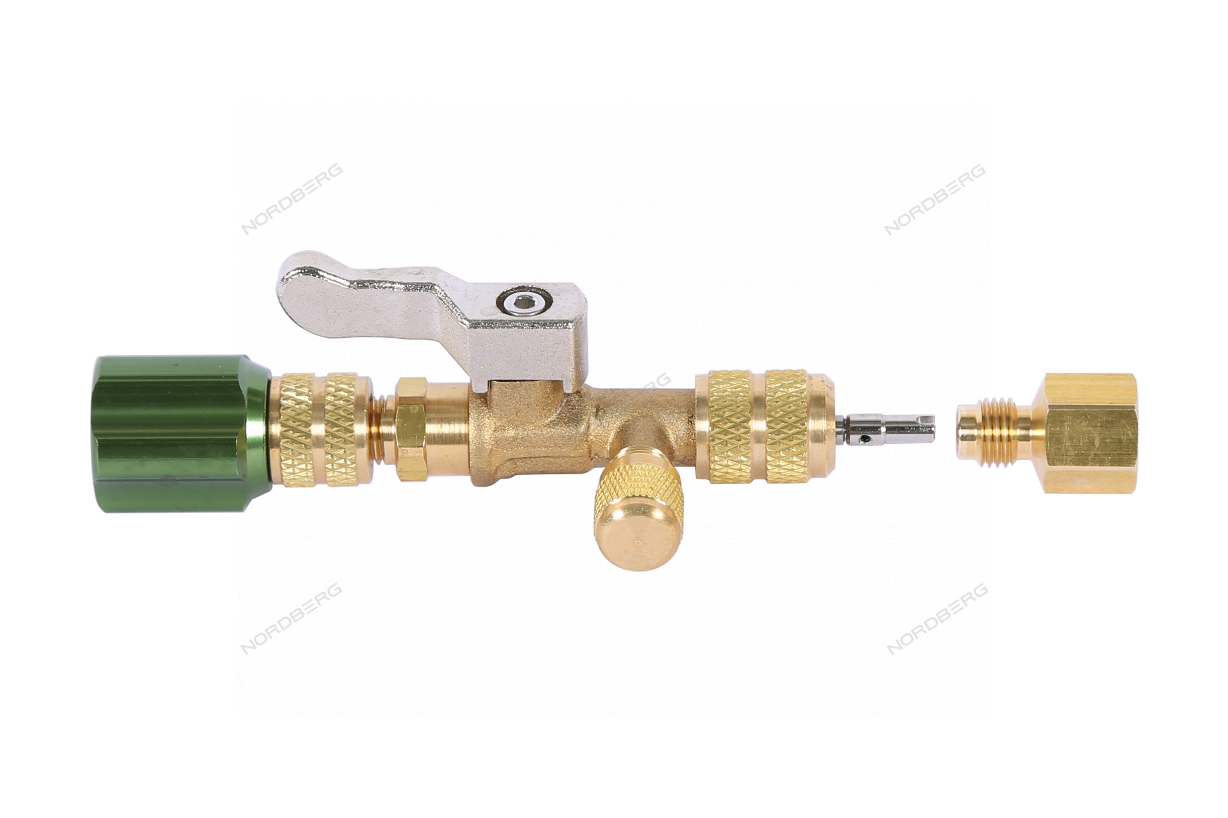 Вентиль NORDBERG NFV1 позволяет подключится к системе кондиционирования и заменить золотник под давлением.