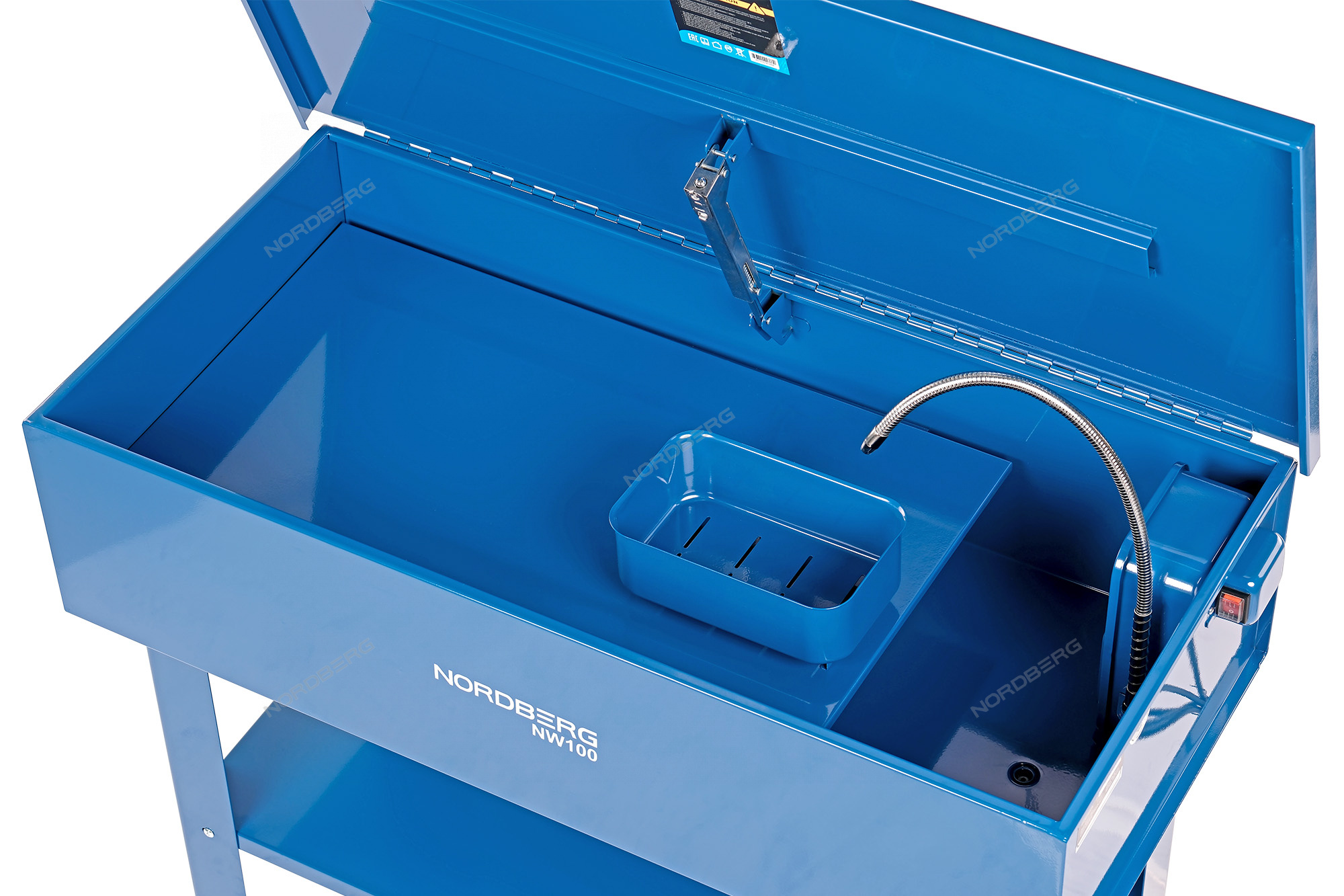 Установка для мойки деталей NORDBERG NW100 предназначена для очистки деталей и агрегатов автомобилей физико-химическим путем при помощи циркулирующего моющего раствора на водной и щелочной основе.