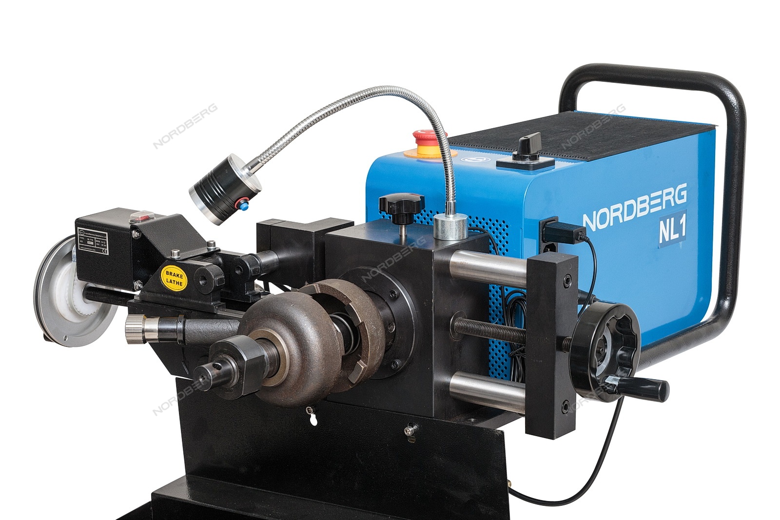 Установка NL1 предназначена для проточки тормозных дисков как на автомобиле так и снятых с автомобиля. Токарная группа позволяет полностью выровнять поверхность тормозного диска, что приведет к более полному контакту поверхностей тормозных колодок и диска и соответственно повысит тормозные характеристики автомобиля.