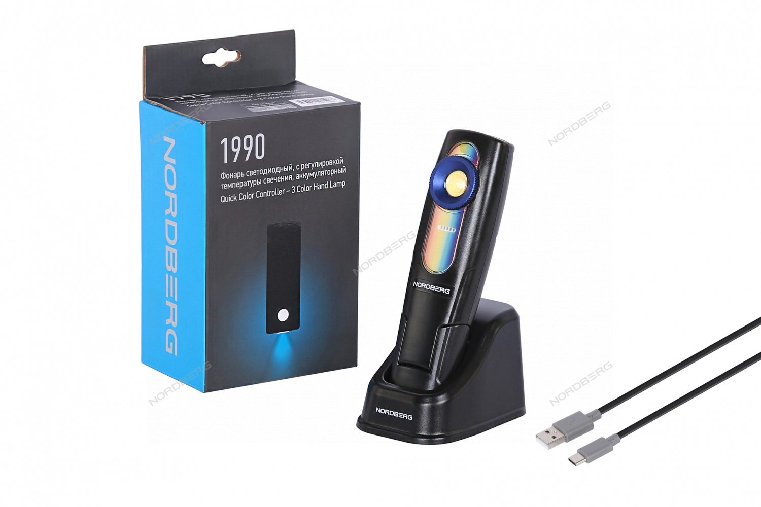 Светодиодный аккумуляторный фонарь для детейлинга NORDBERG 1990 – осветительный прибор для профессионального использования в детейлинг-студиях и специализированных автосервисах.
