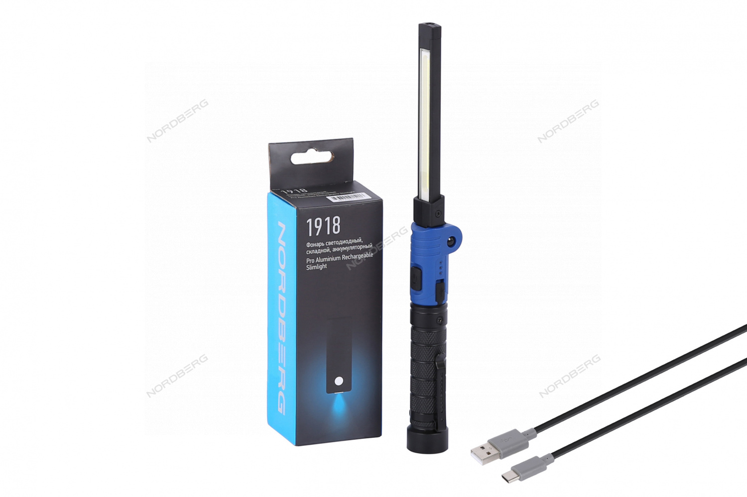 Складной светодиодный аккумуляторный фонарь NORDBERG 1918 – осветительный прибор для профессионального использования в автосервисах и СТО.
