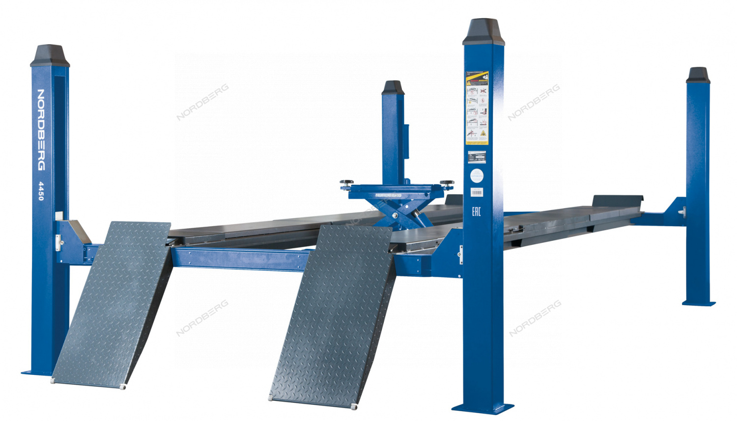 Подъемник 4-стоечный 5 т, c ручной траверсой 3 т, 380 В, синий NORDBERG 4450_AB(M) подходит для сход-развала.