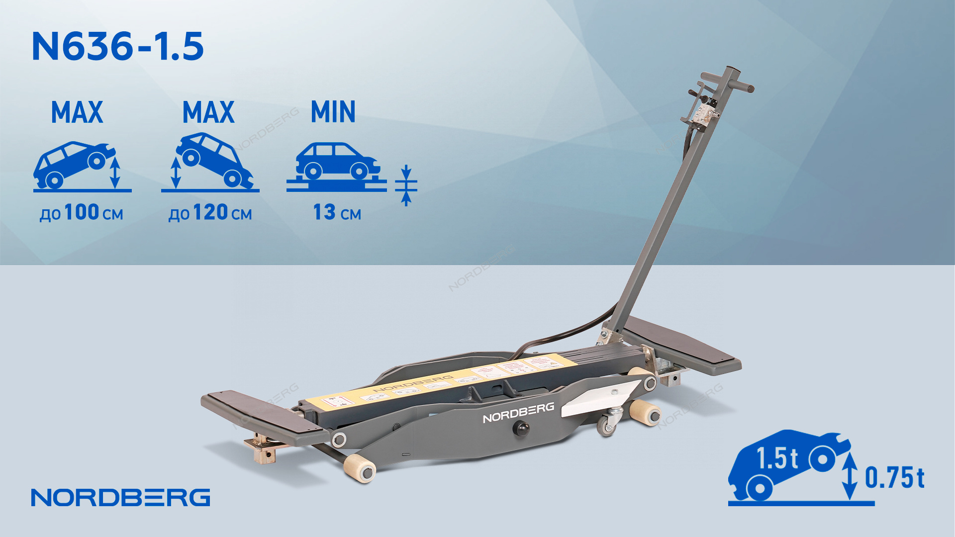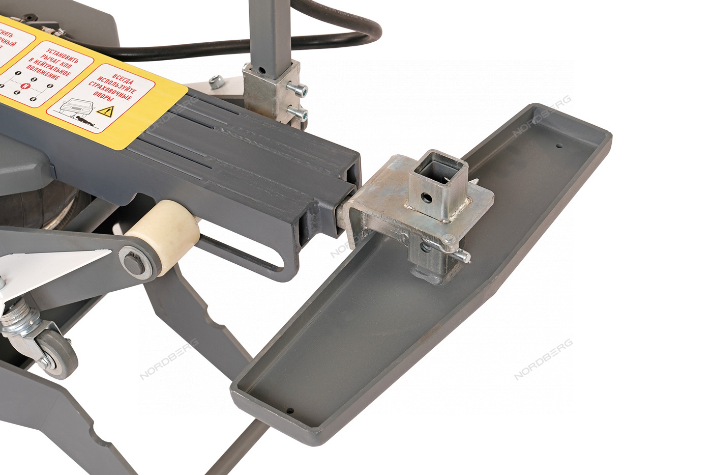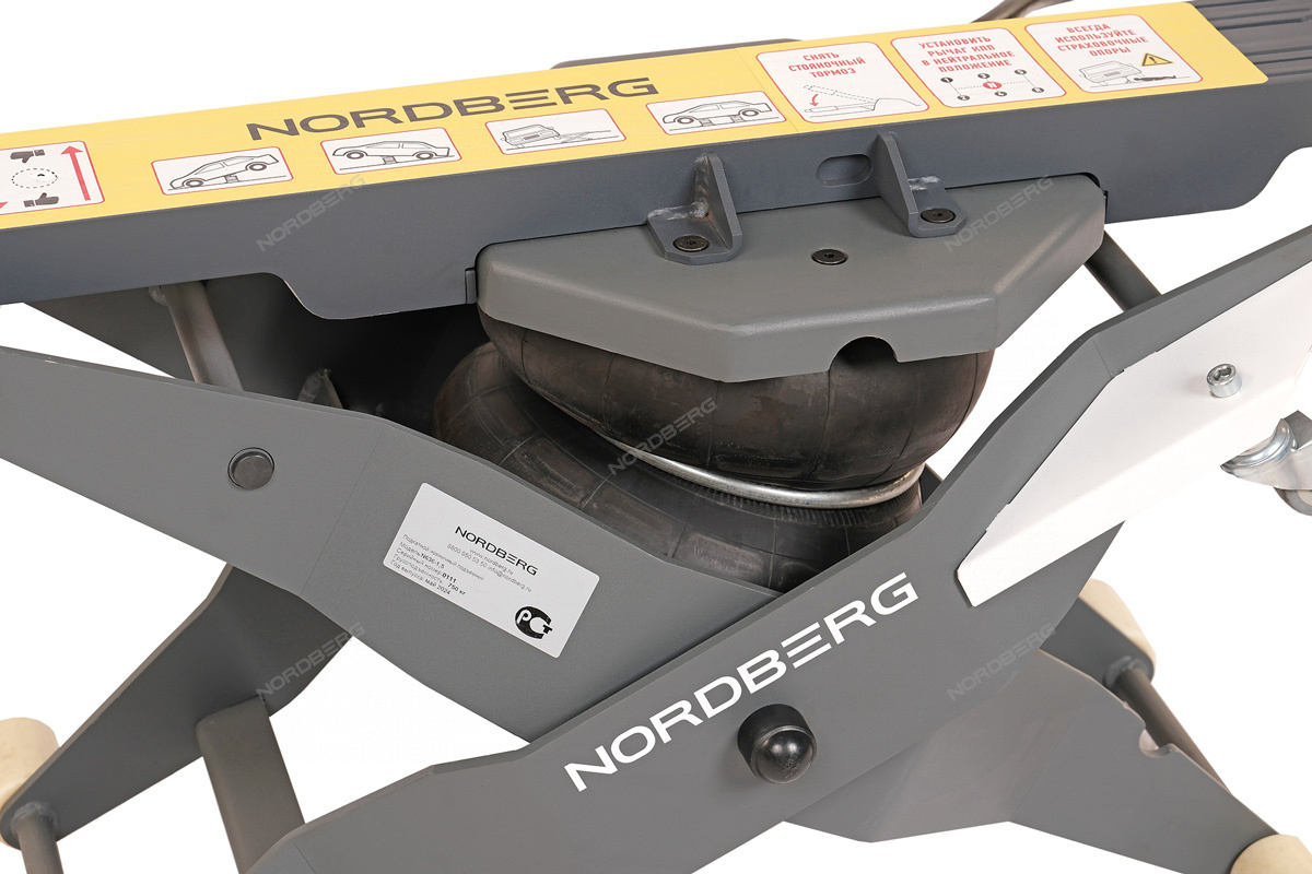 Подъемник, сделанный по типу складной конструкции, управляется при помощи пневмобаллона, что обеспечивает плавное и точное поднятие и опускание автомобиля, а также помогает контролировать высоту подъема.