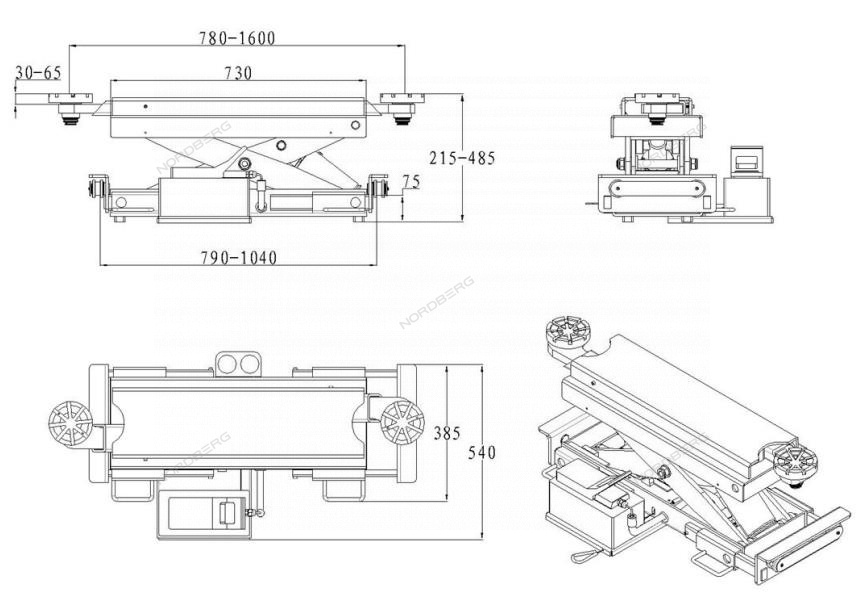 Подходит для четырехстоечных подъемников NORDBERG: 4445J; 4450; 4450J и для ножничных подъемников NORDBERG: N634-4; N634-4,5; N634-4,5; N635-5,5