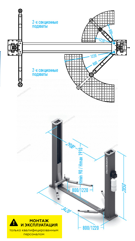 Nordberg N4120B-4B 4-х тонный электрогидравлический подъемник (220В) с нижней тросовой синхронизацией
