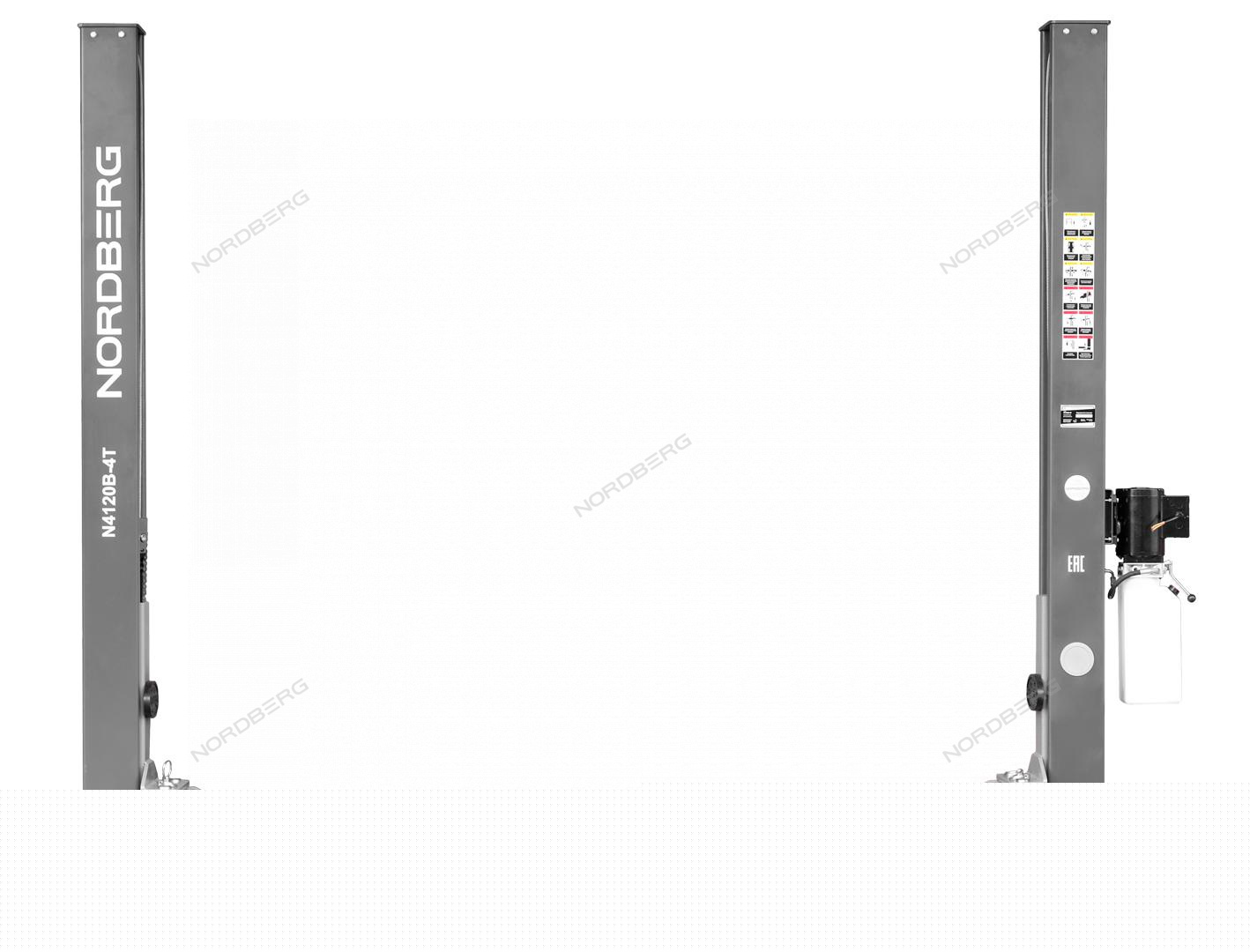Двухстоечный подъемник с нижней тросовой синхронизацией NORDBERG N4120B-4G_3+2 – профессиональное оборудование для обслуживания легкового и грузового транспорта в автосервисных мастерских и СТО.