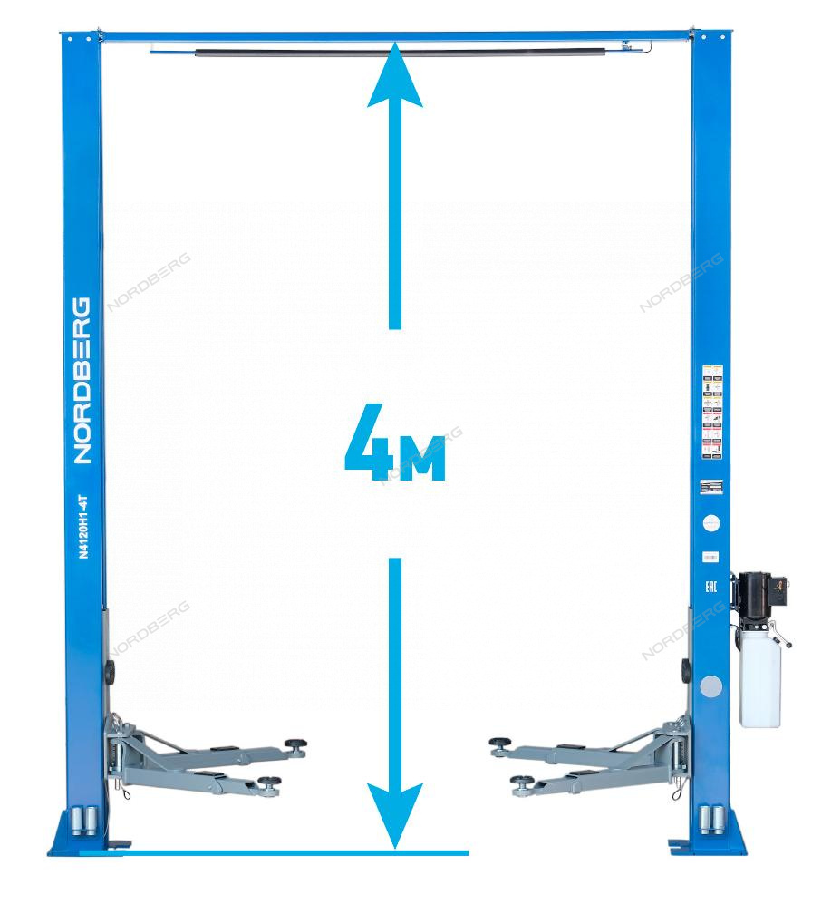 Двухстоечный подъемник с верхней синхронизацией NORDBERG N4120H1-4B_3+2 – профессиональное оборудование для обслуживания легкового и грузового транспорта в автосервисных мастерских и СТО.