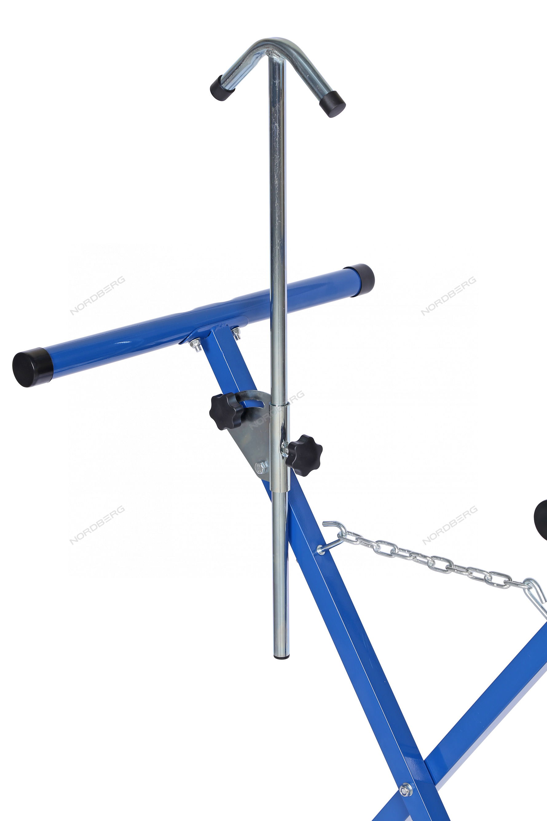 Складной механизм стенда позволяет производить различные регулировки по высоте и ширине захвата детали, а также экономить место для хранения