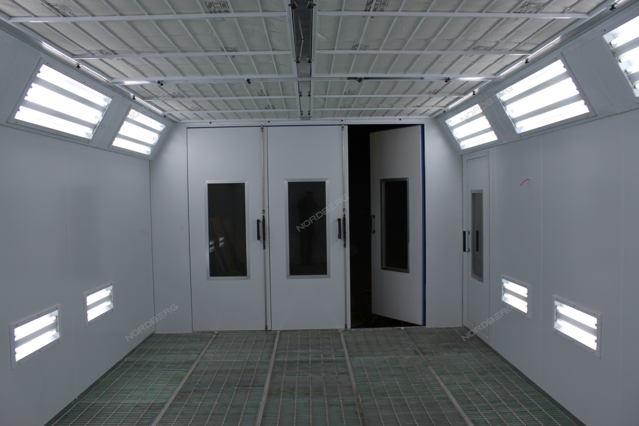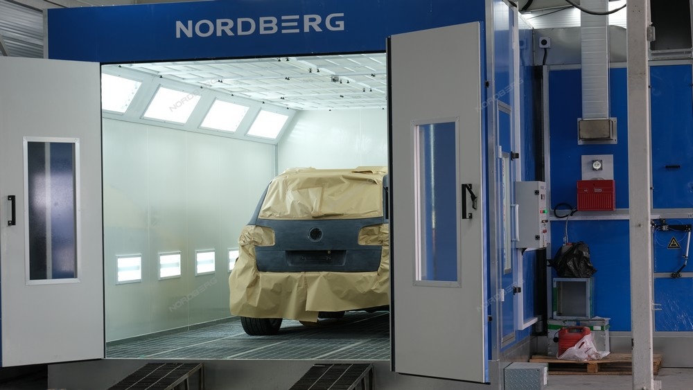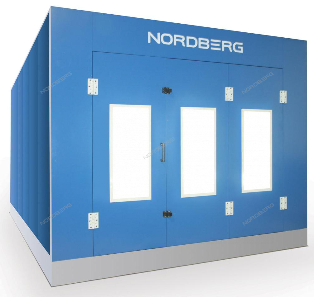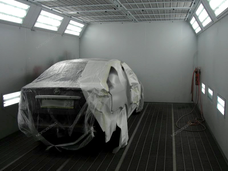 Окрасочно сушильная камера NORDBERG предназначена для окраски легковых автомобилей целиком или частично. Камера представляет собой кабину на металлическом основании с вентиляторной группой для нагнетания избыточного давления воздуха внутри кабины и для обеспечения устойчивого воздухопотока.