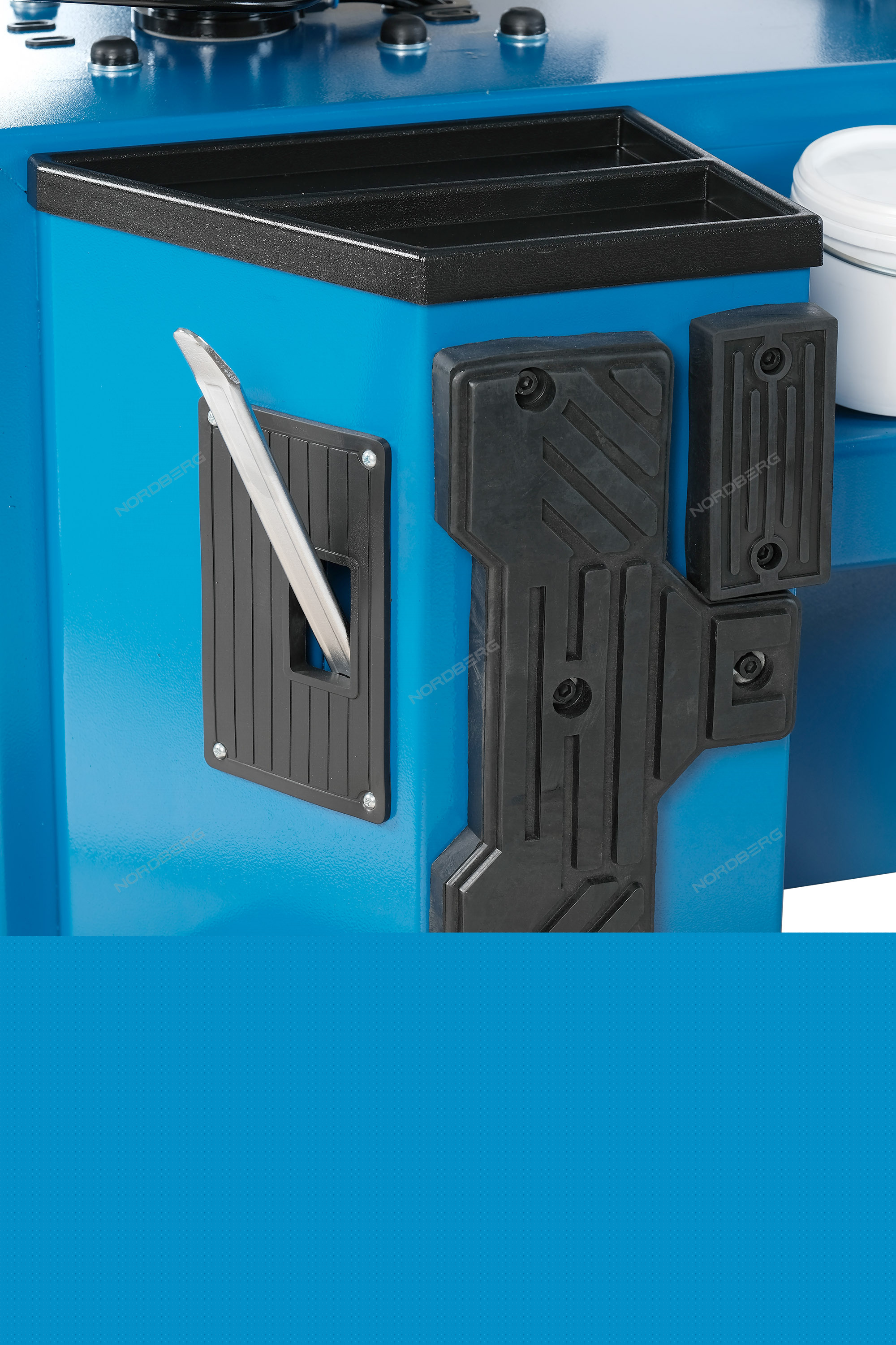 Ручка управления отжимной лапой и специальный лоток для хранения подручного инструмента находятся у оператора под рукой, что ускоряет рабочий процесс