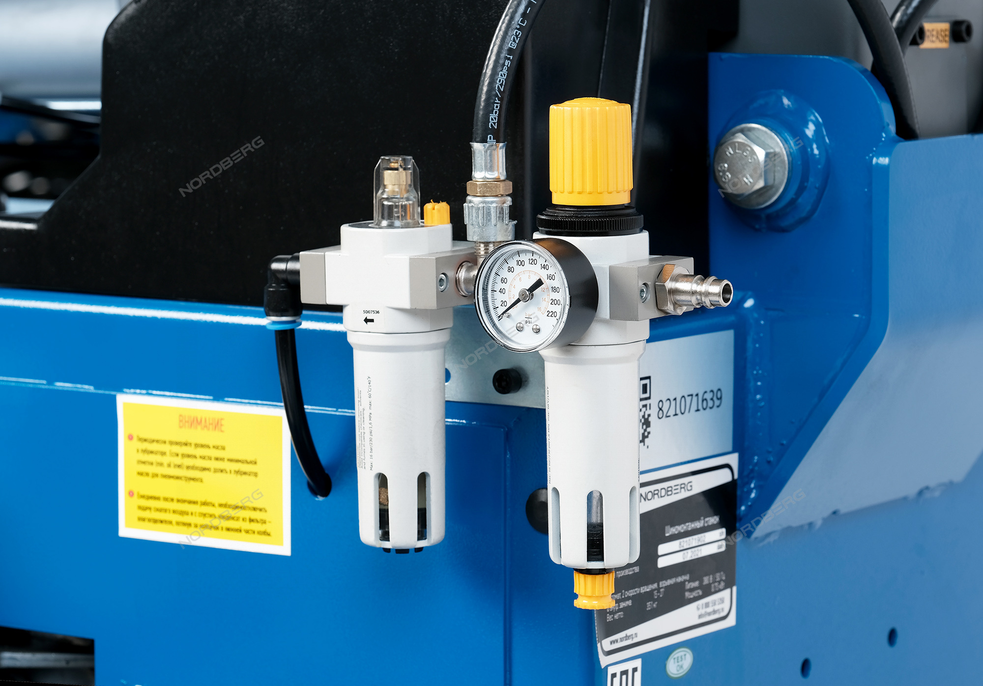 Манометр для контроля уровня давления воздуха смонтирован на монтажной стойке