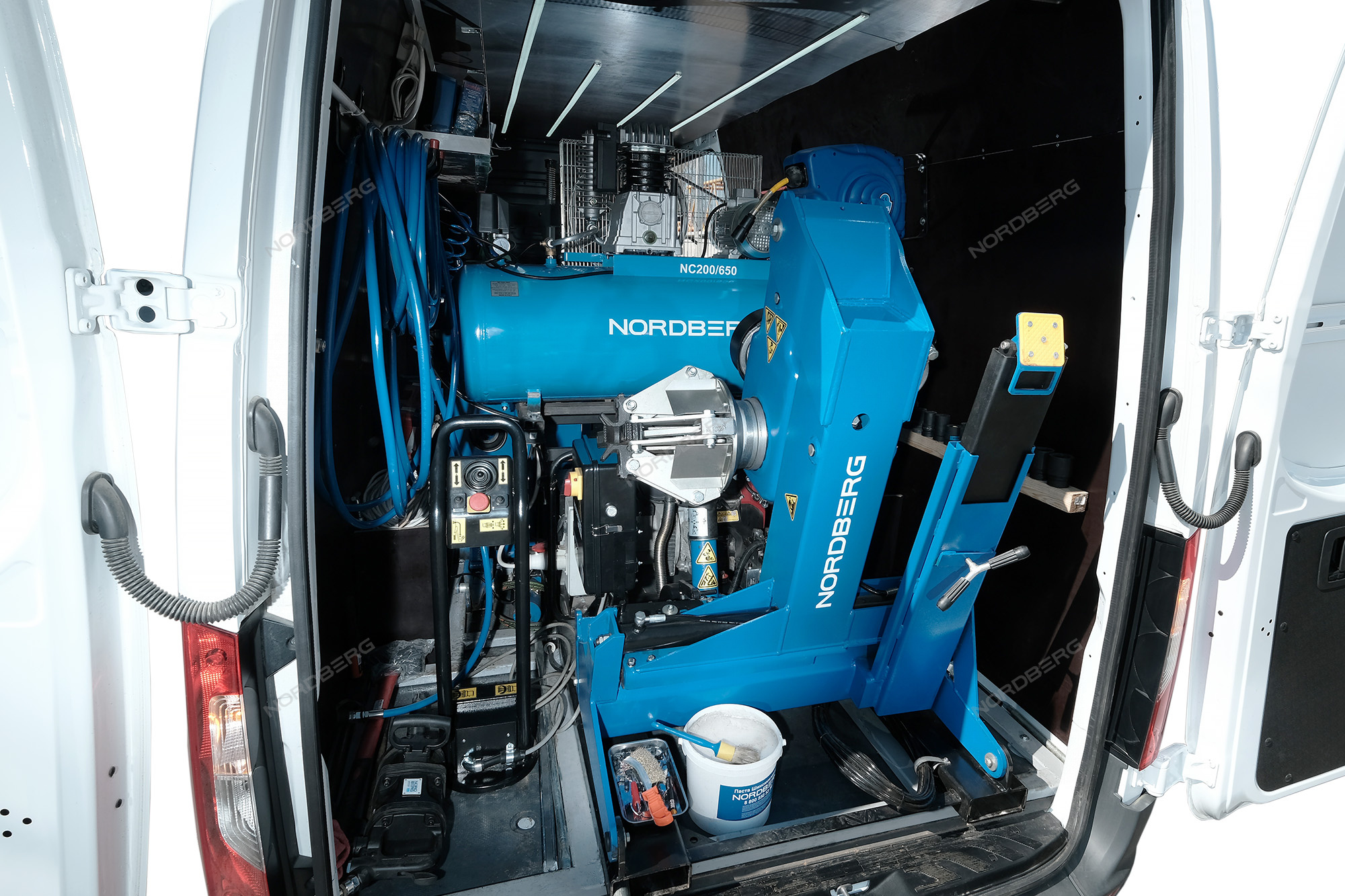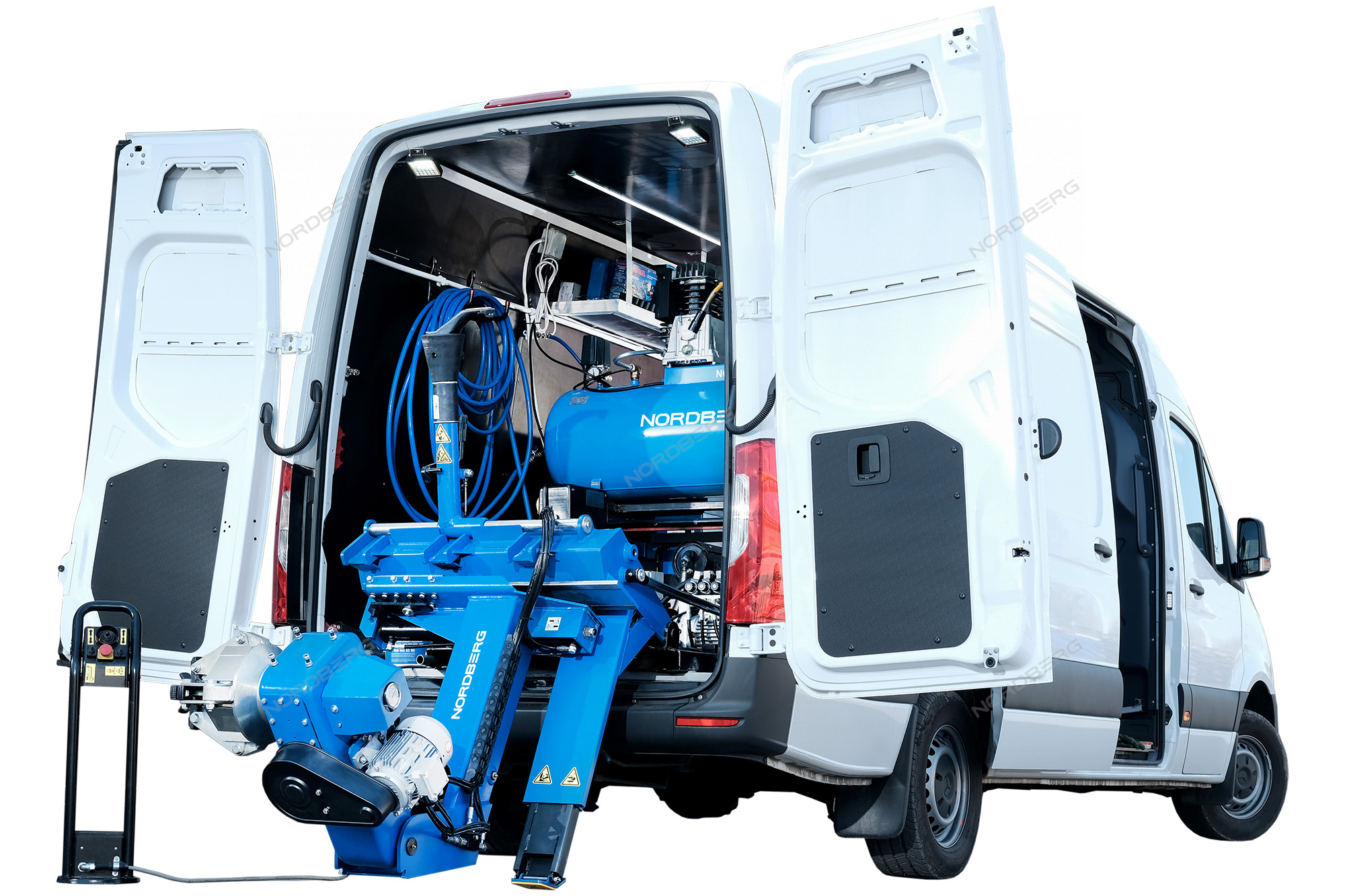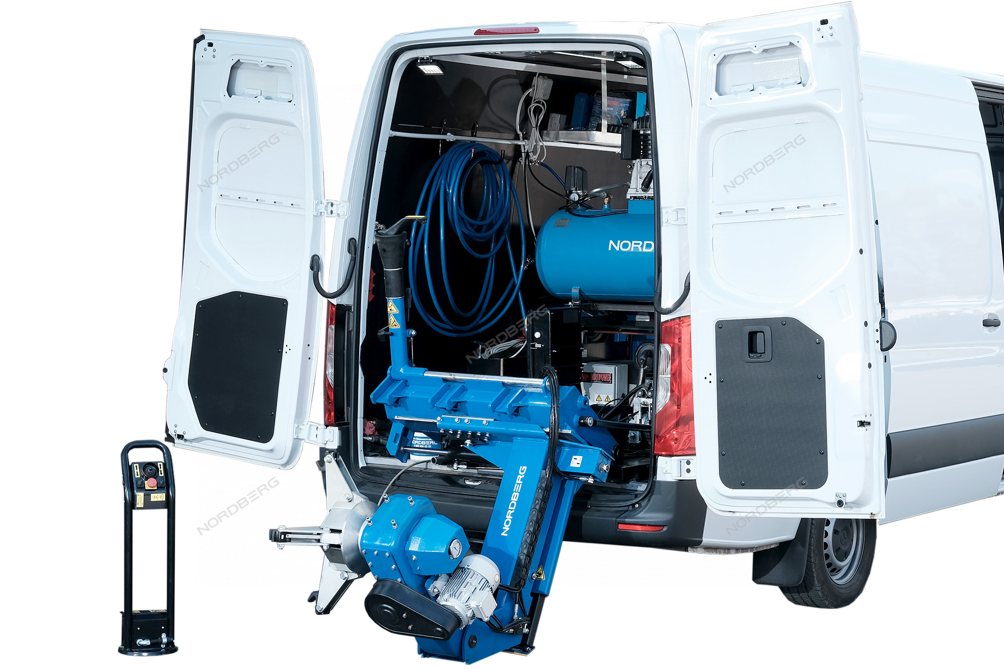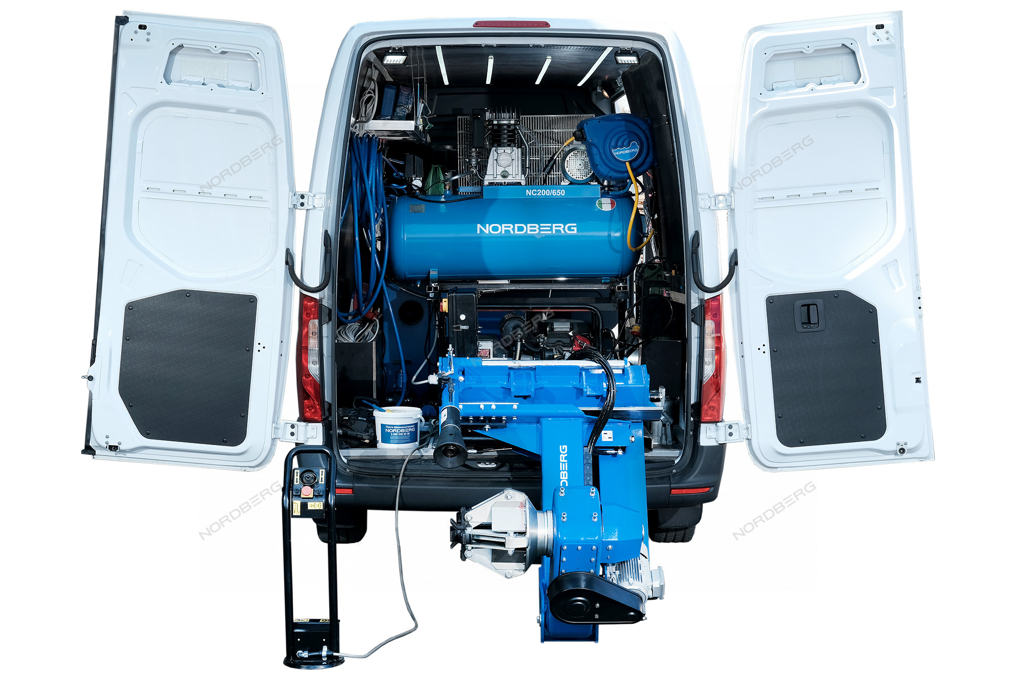 Мобильный грузовой шиномонтажный станок Nordberg 46TRKM для выездного обслуживания колес грузовых автомобилей, автобусов, сельскохозяйственной и спецтехники с диаметром обода 13"-26" и весом до 700 кг