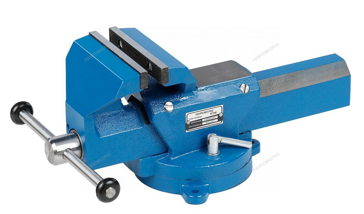 Основание тисков имеет поворотный механизм, благодаря которому корпус тисков можно разворачивать на 360°
