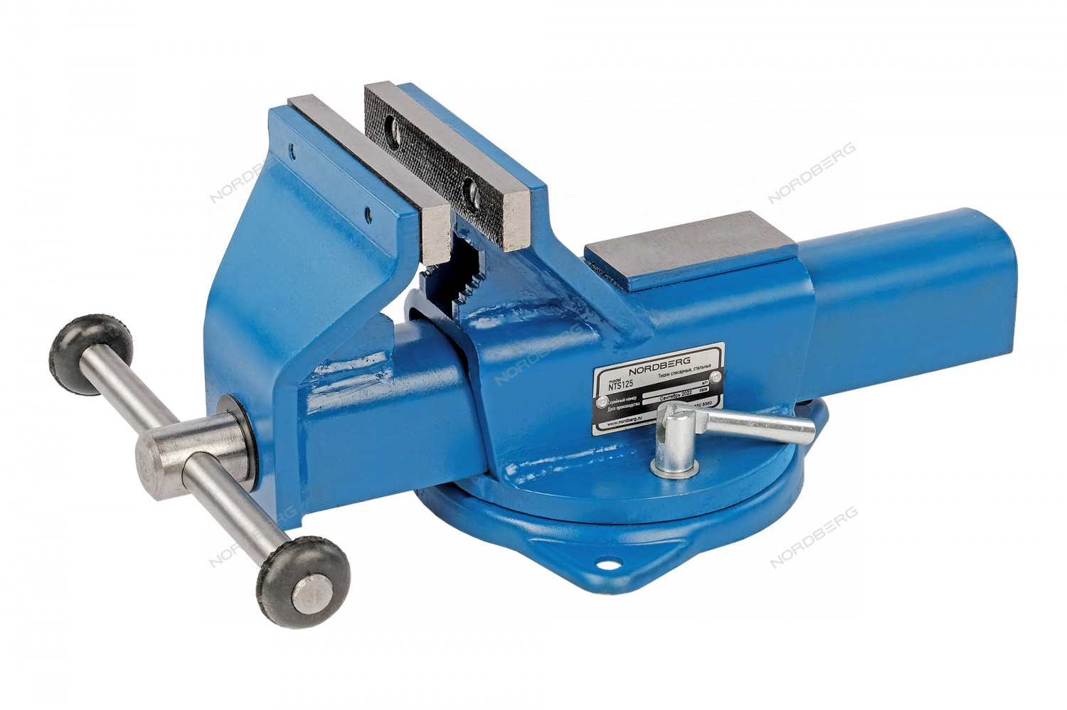 Основание тисков имеет поворотный механизм 360°, фиксация с помощью удобных 2-х зажимных винтов
