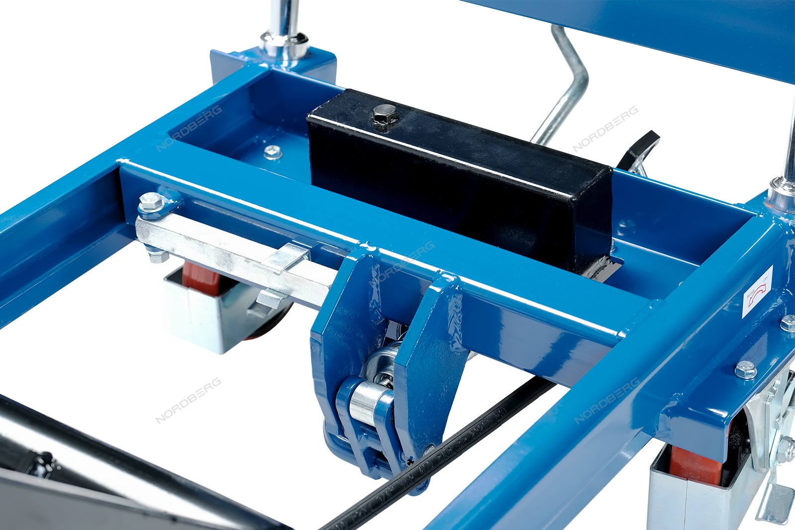 Высота подъема до 1500 мм предоставляет возможность поднять и подкатить груз до пандуса, рабочего стола или борта автомобиля;