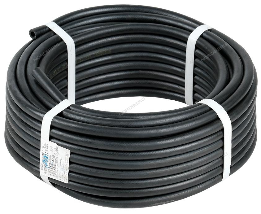 Шланг резиновый с нитяным усилением Nordberg NBR/CR Ø08х16,5 мм предназначен для подачи под давлением сжатого воздуха, инертных газов, дизельного топлива, бензина, масел, щелочей и кислот (кроме азотной) с концентрацией до 20%. Выдерживает давление до 48 бар и температуру от -50°C до + 90°C