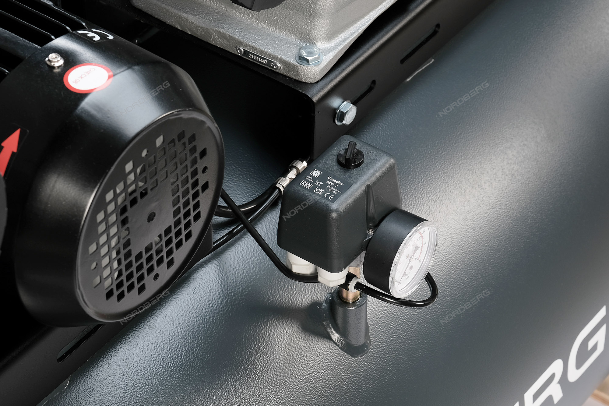 2 встроенных манометра для контроля давление внутри и на выходе ресивера