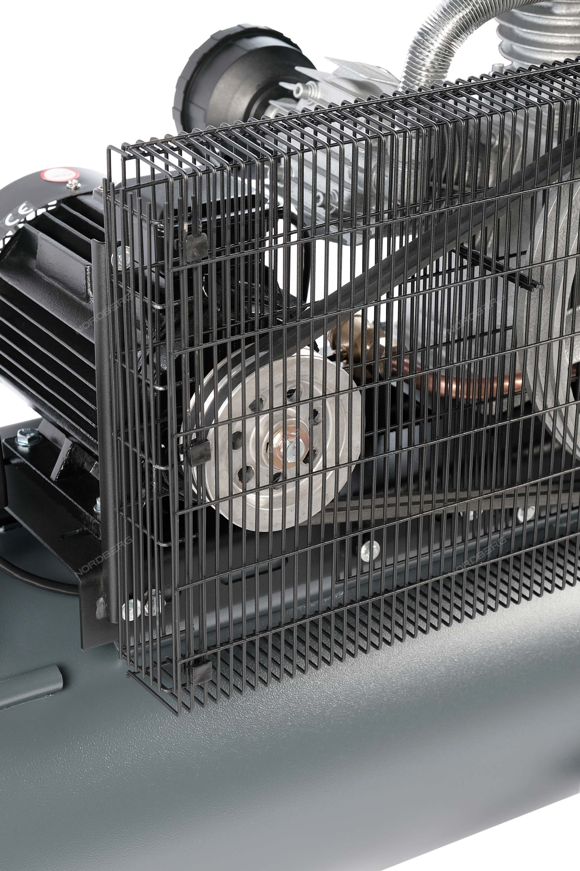 Ременная передача компрессора закрыта решетчатым кожухом, защищающим от повреждений