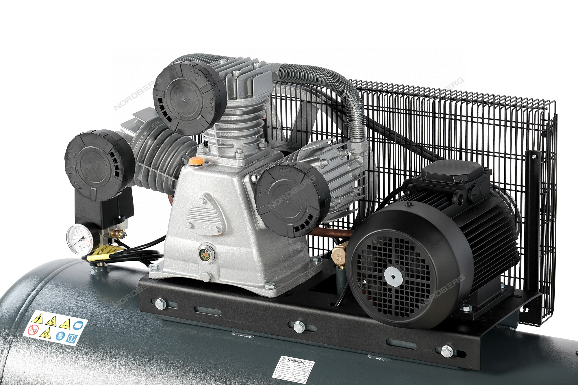 Ременная передача компрессора закрыта решетчатым кожухом, защищающим от повреждений