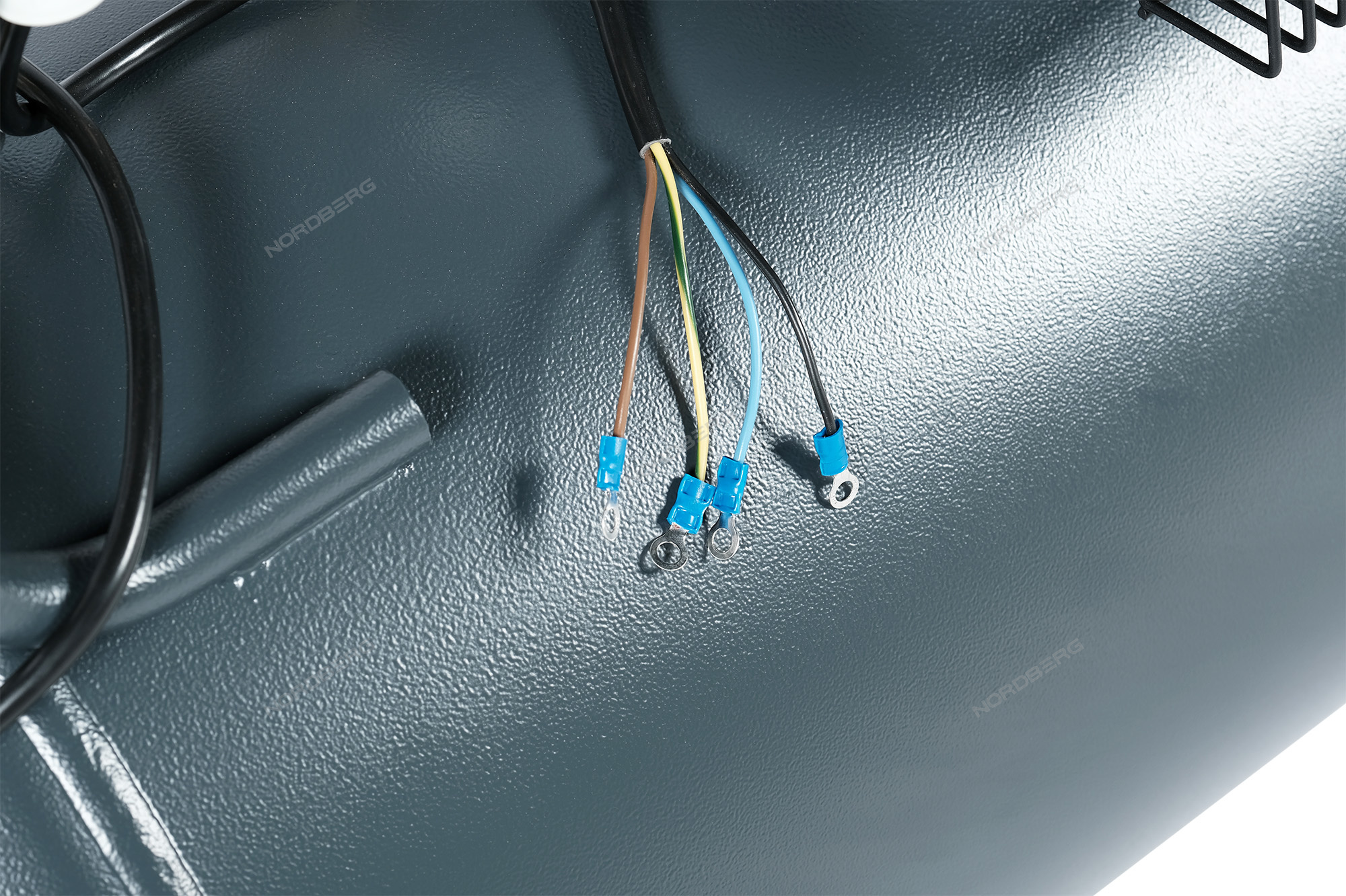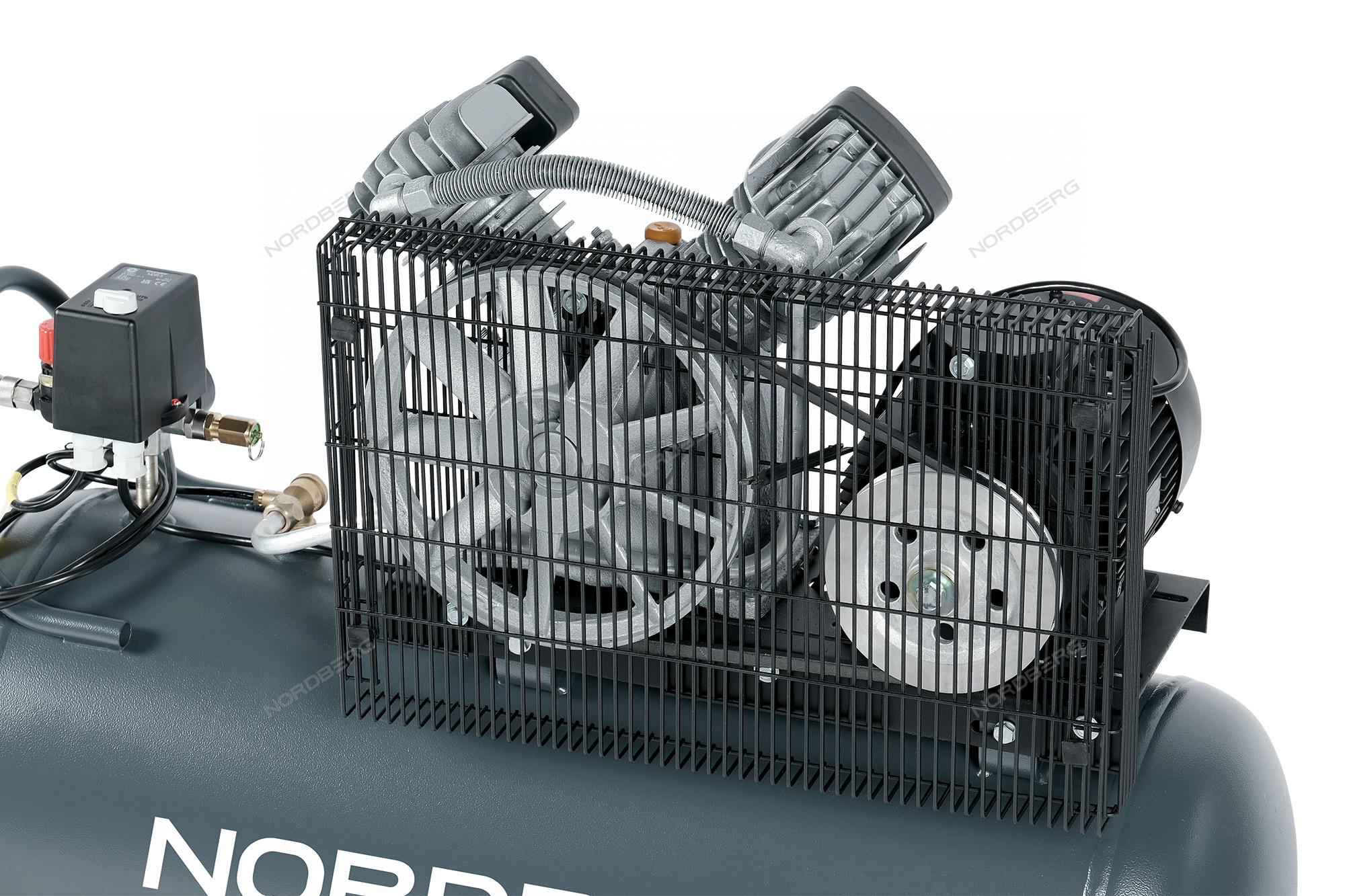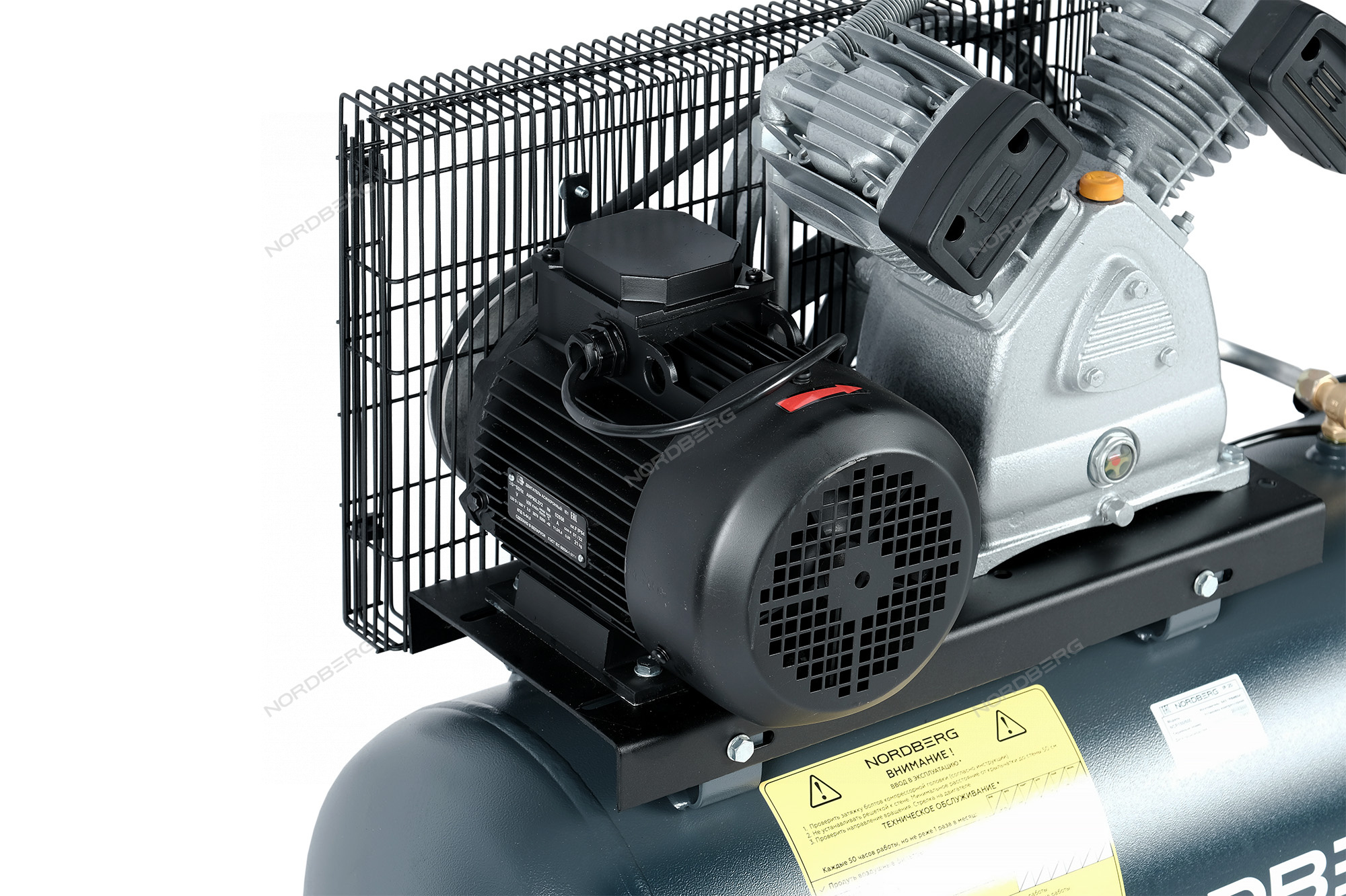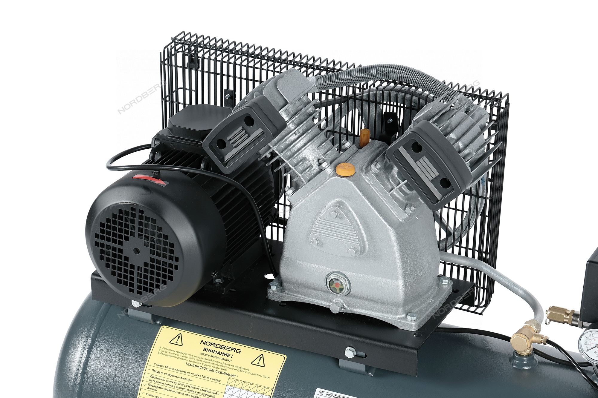Ременная передача компрессора закрыта решетчатым кожухом, защищающим от повреждений