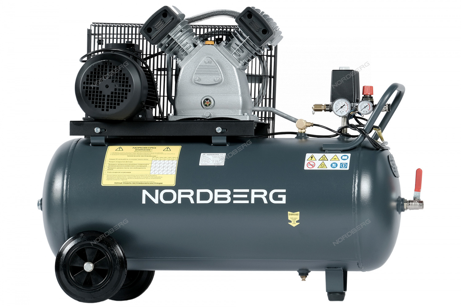 Эргономичная ручка и большие устойчивые колеса на компрессорах объемом до 270 литров