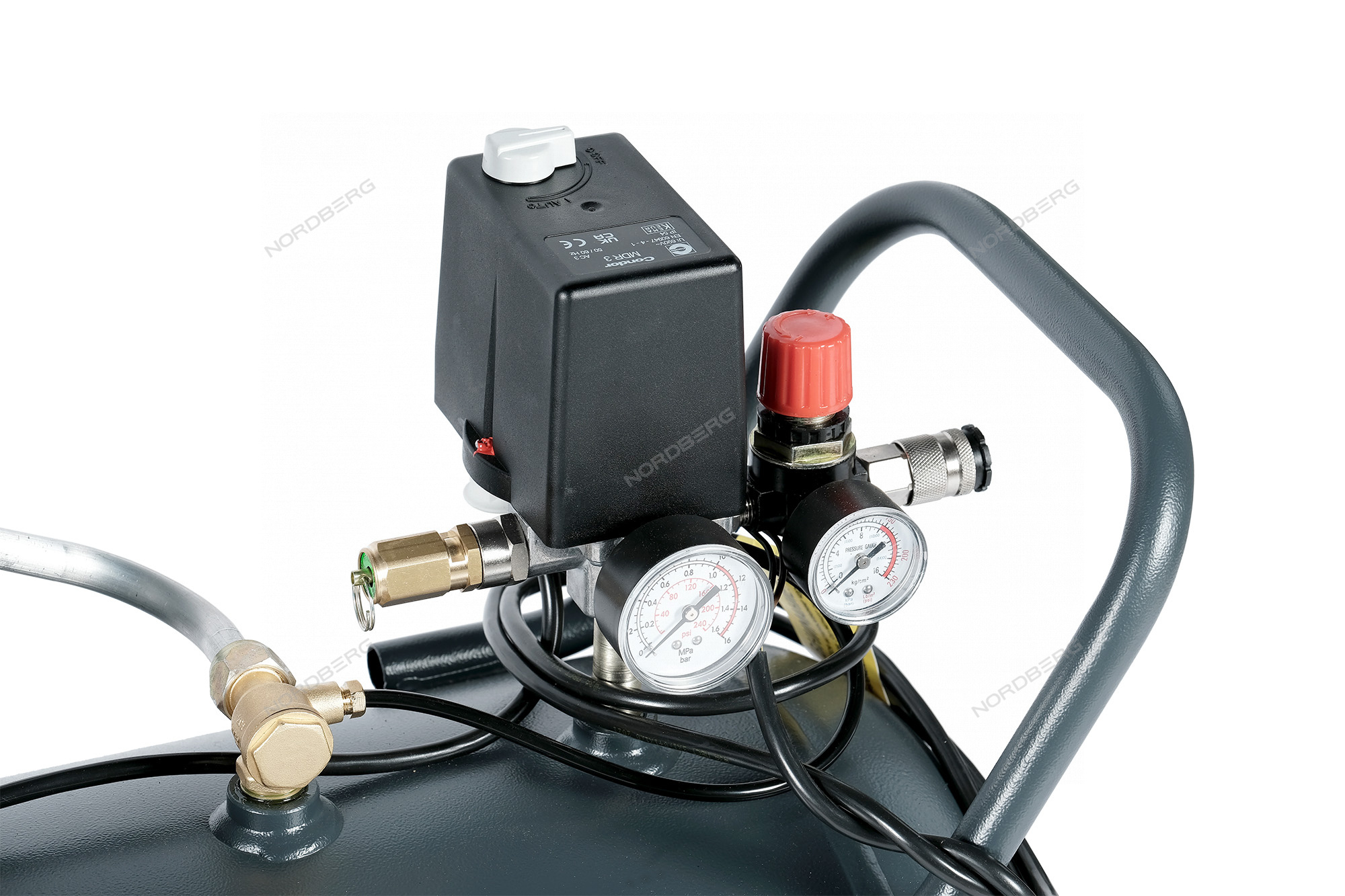 2 встроенных манометра для контроля давление внутри и на выходе ресивера