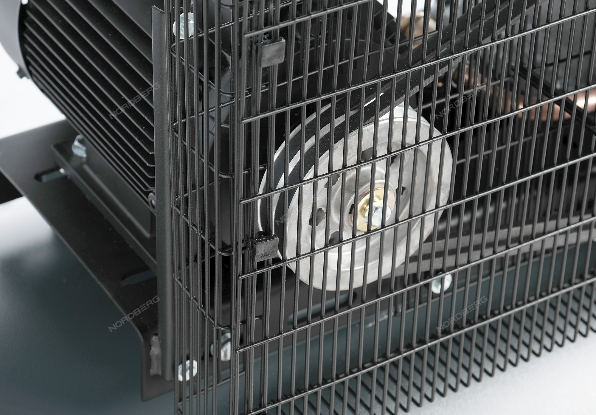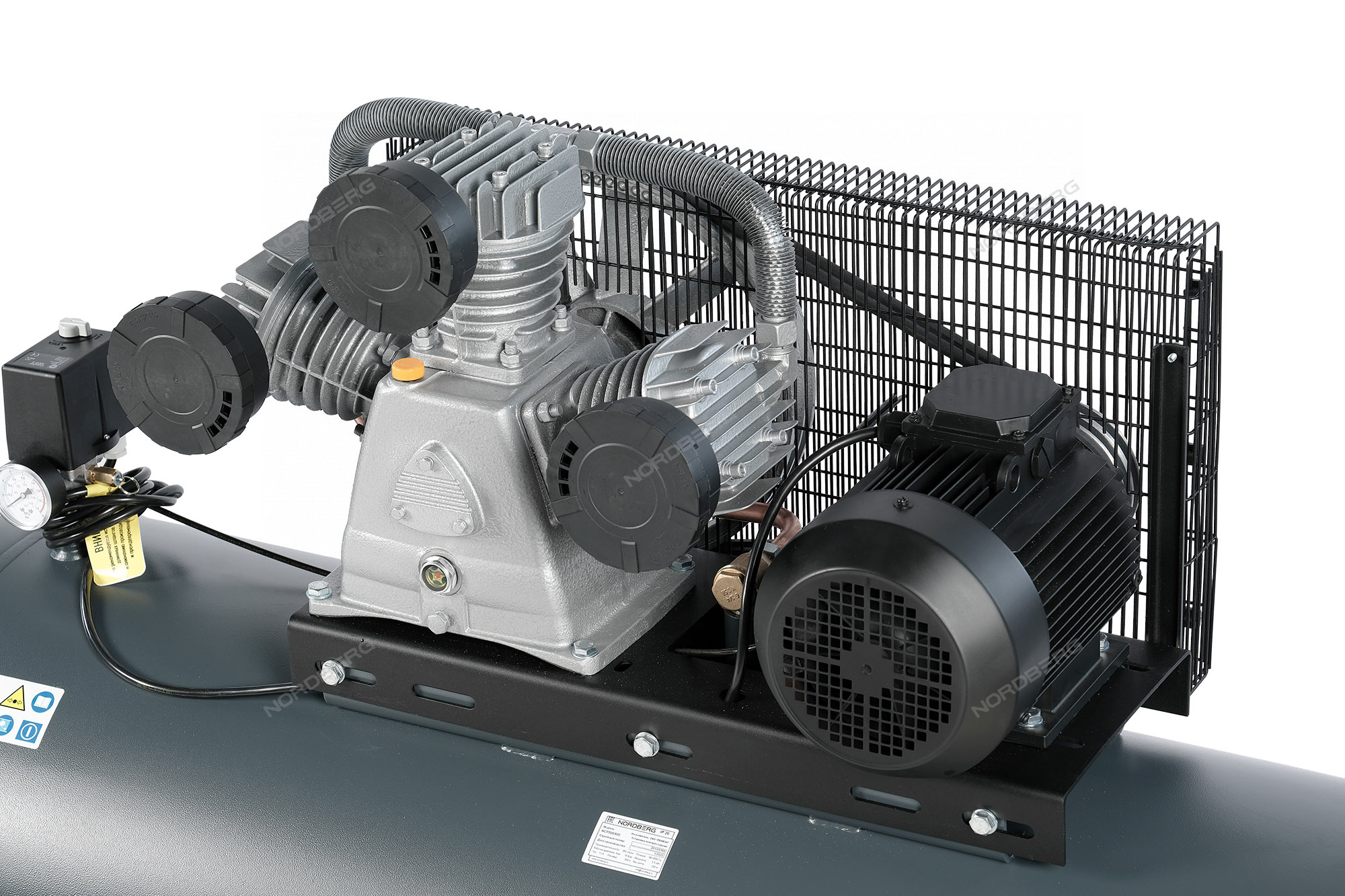 Ременная передача компрессора закрыта решетчатым кожухом, защищающим от повреждений