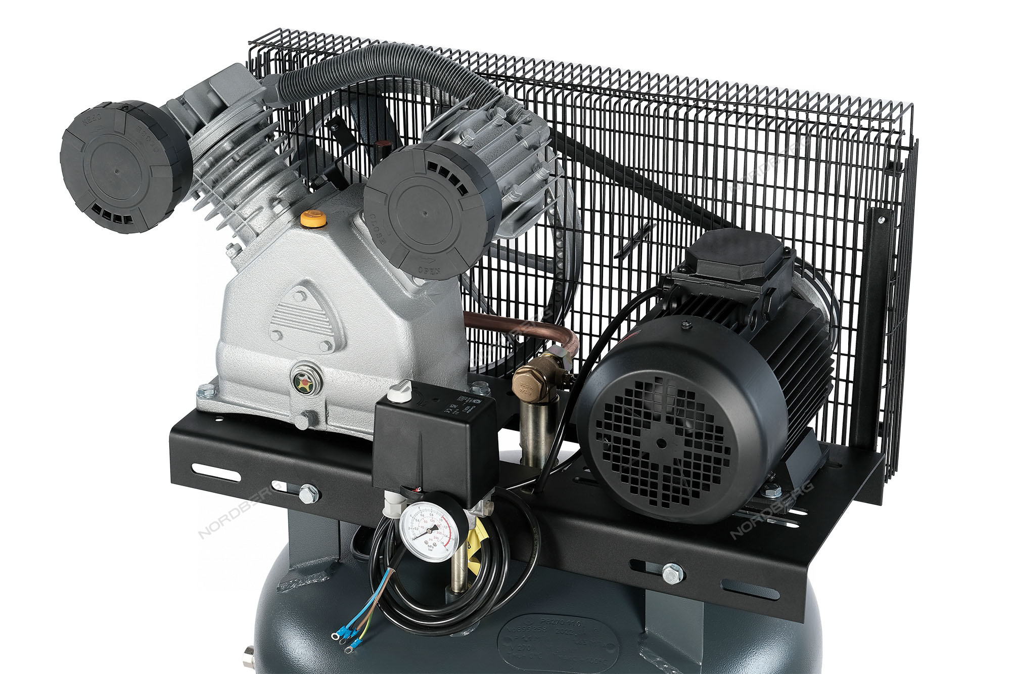 Ременная передача компрессора закрыта решетчатым кожухом, защищающим от повреждений