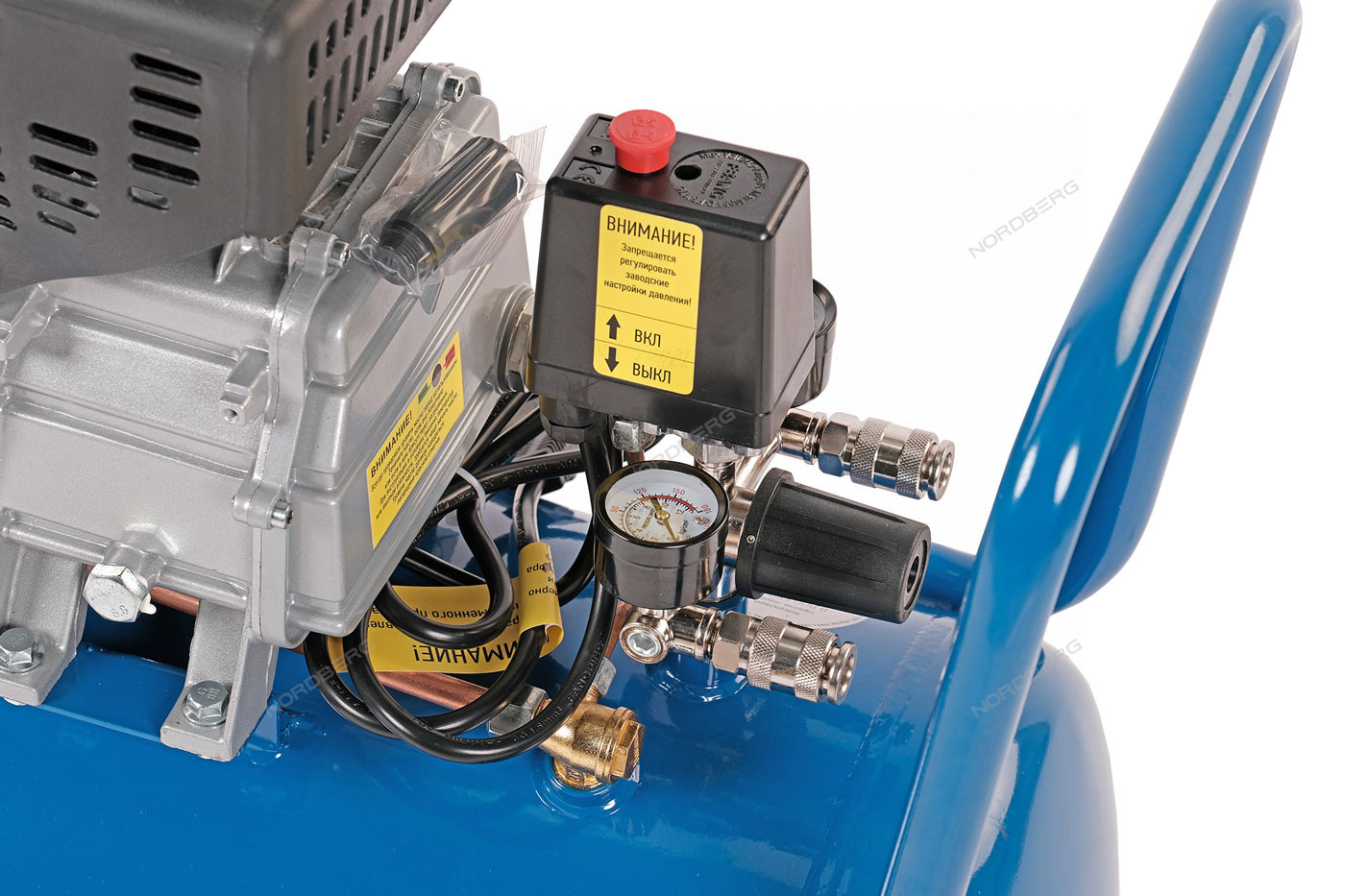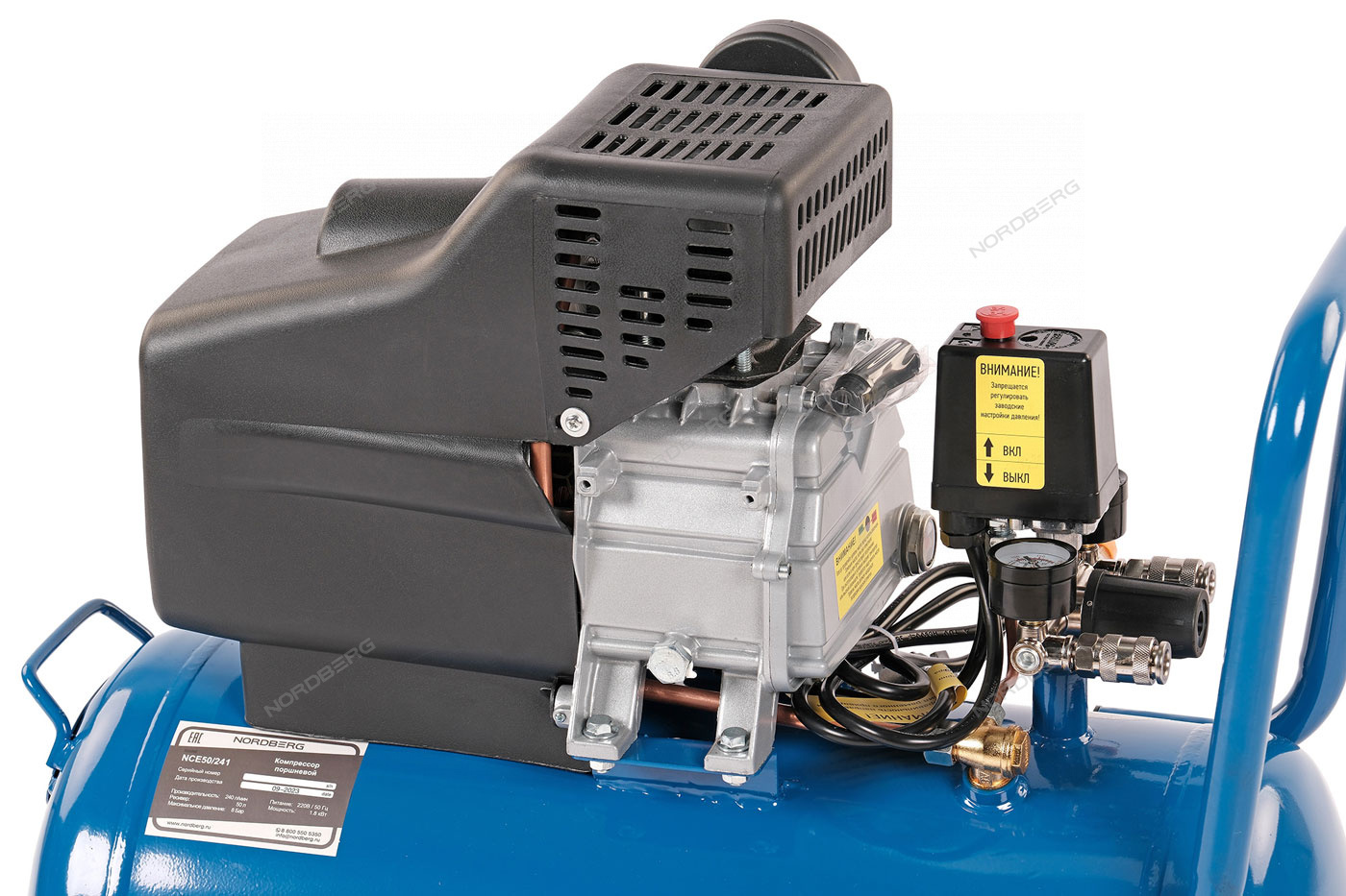 Поршневой компрессор с ресивером NORDBERG NCE50/241 – промышленное оборудование для применения с пневмоинструментами в автосервисных мастерских и для использования в бытовых целях.
