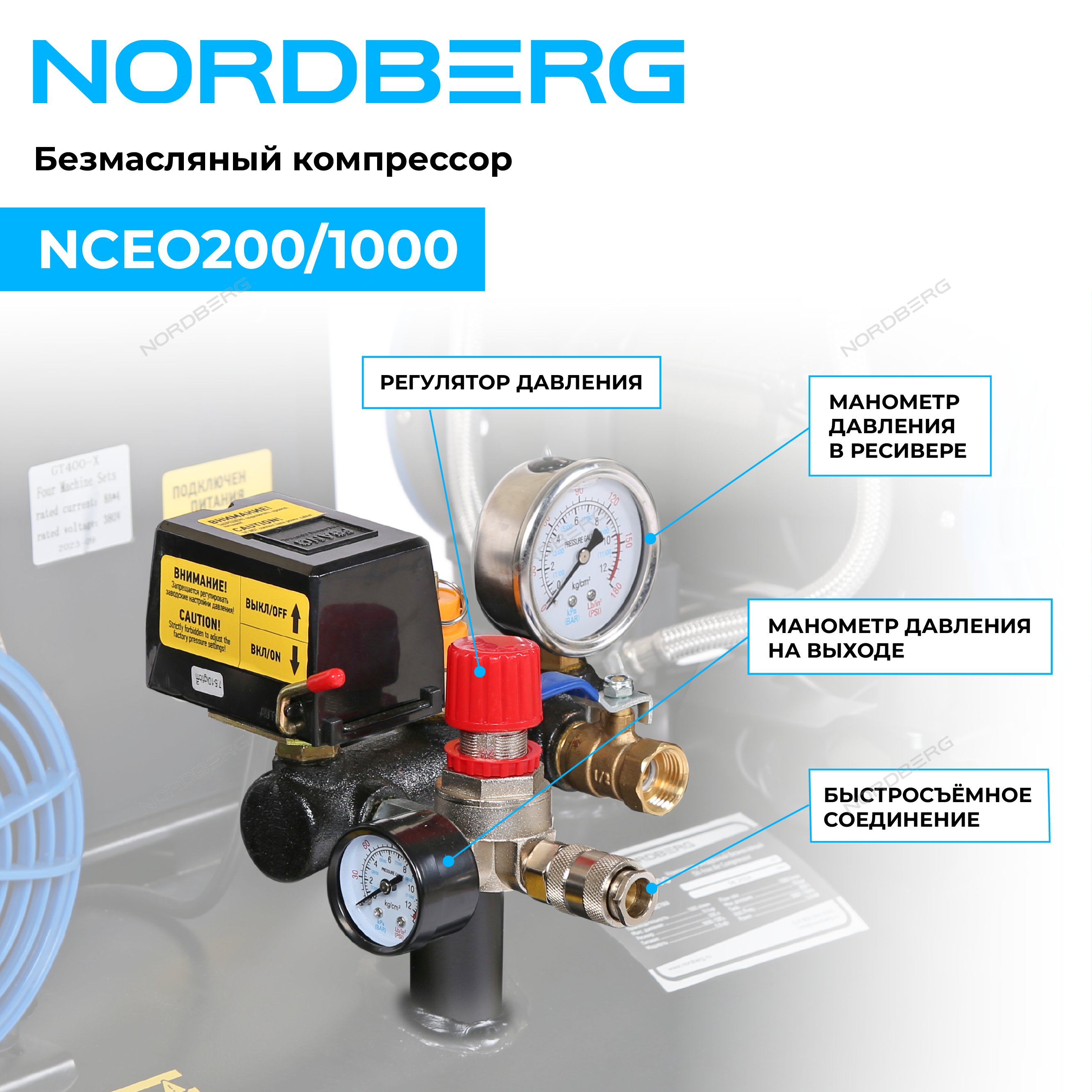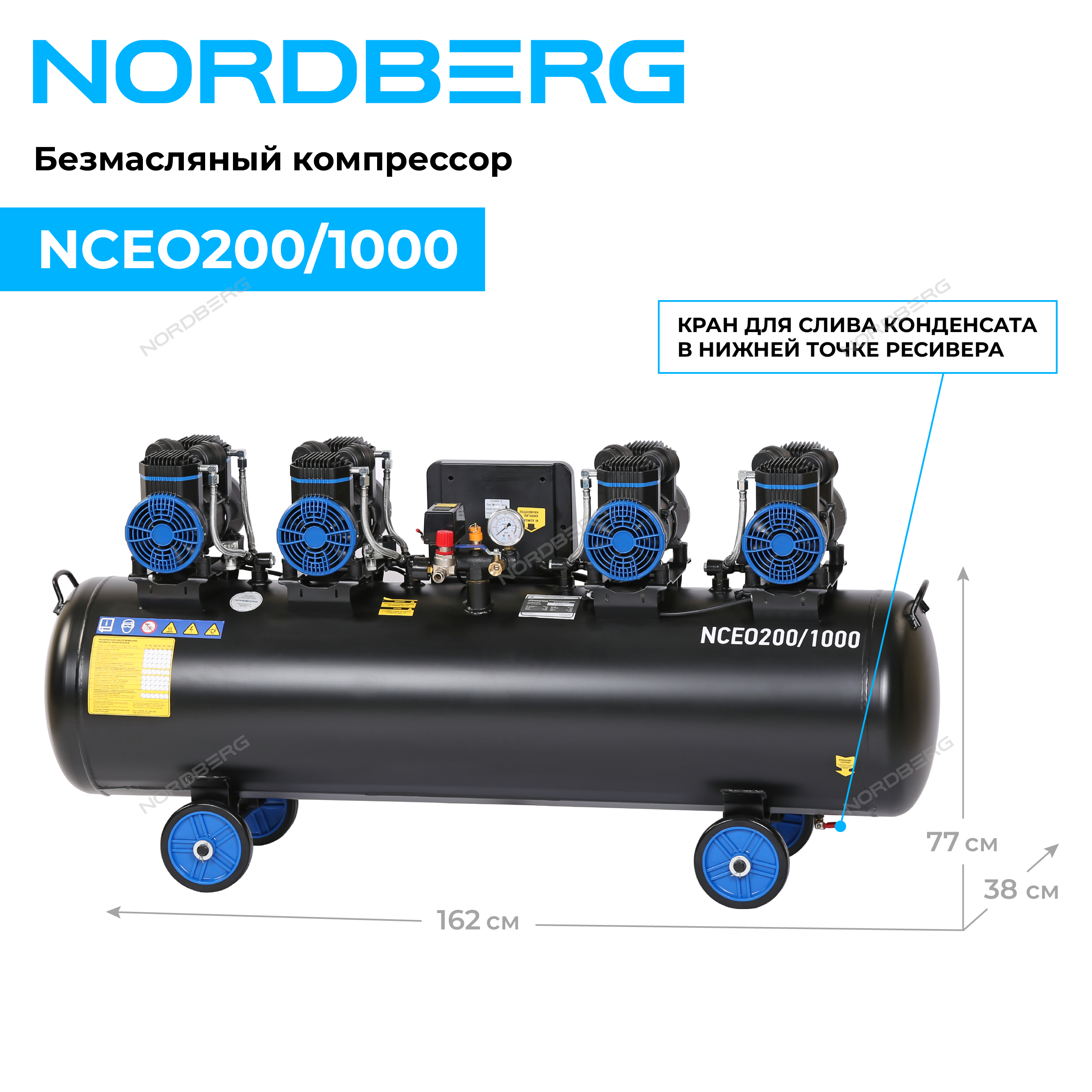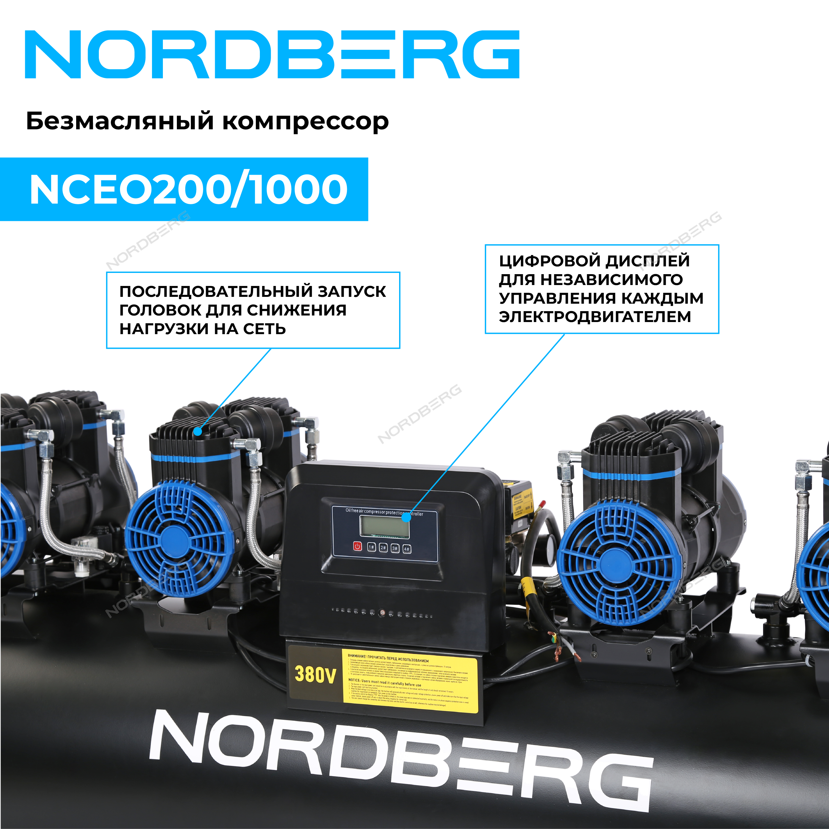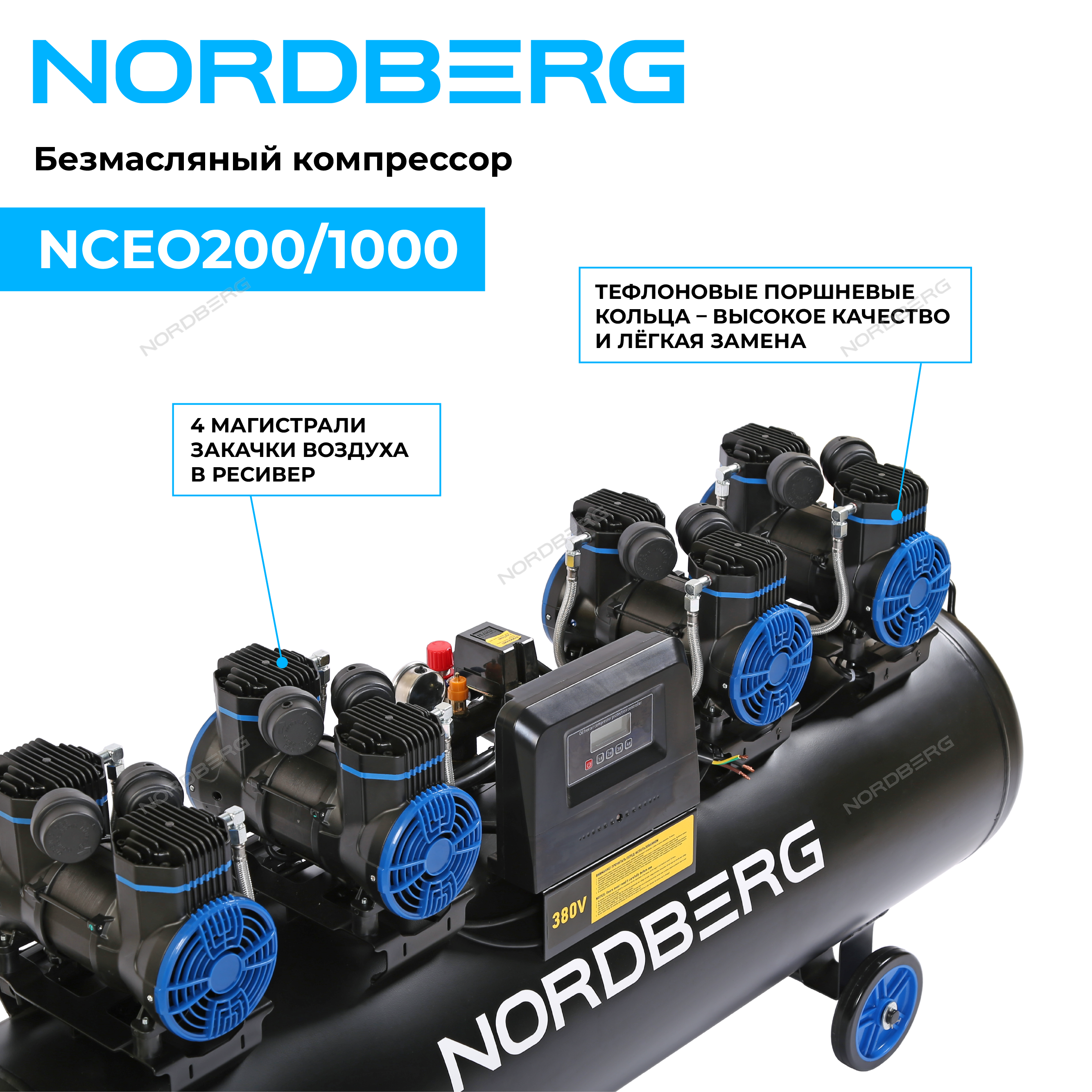 Безмасляный компрессор NORDBERG NCEO200/1000 – промышленное оборудование для станций технического обслуживания, автотранспортных и производственных предприятиях.