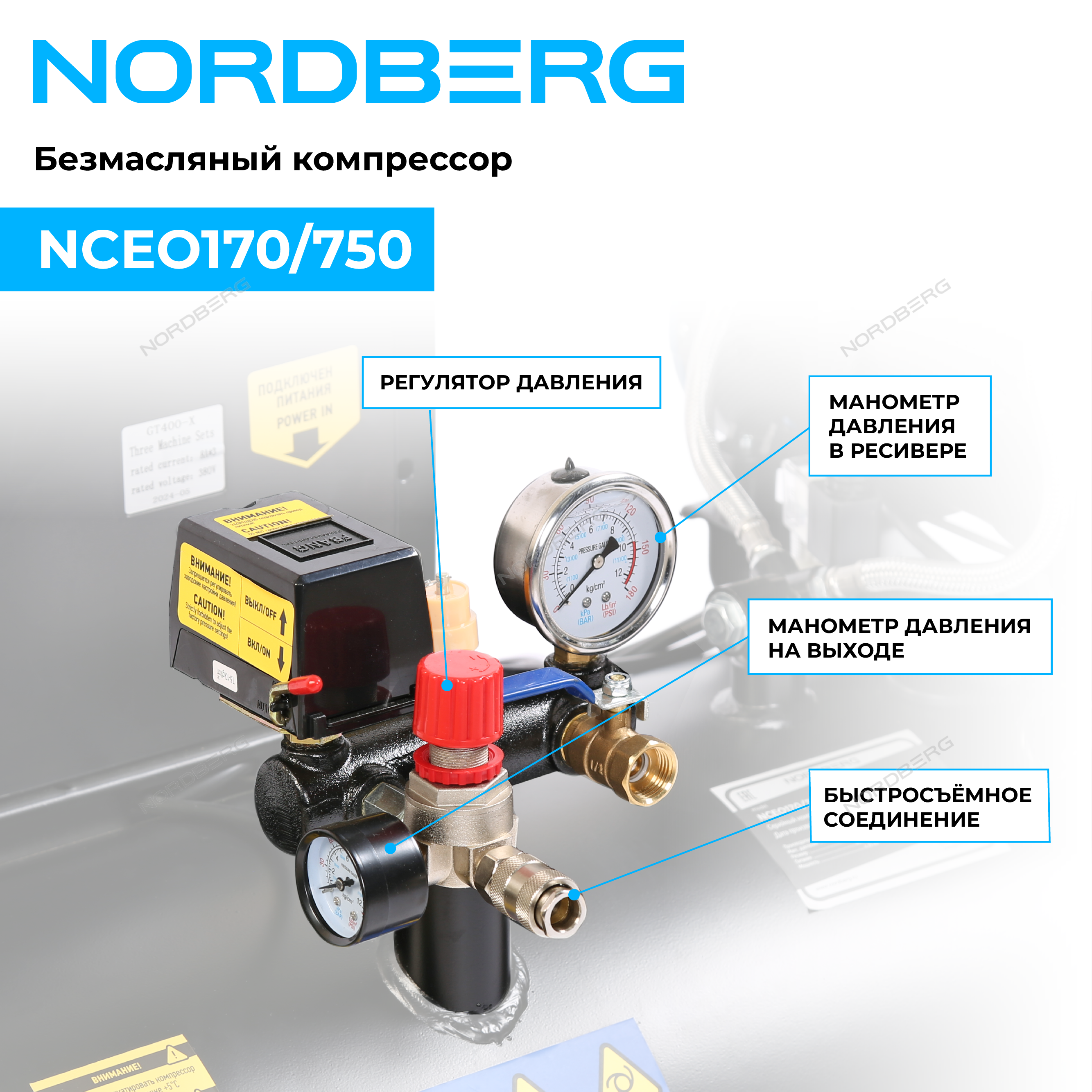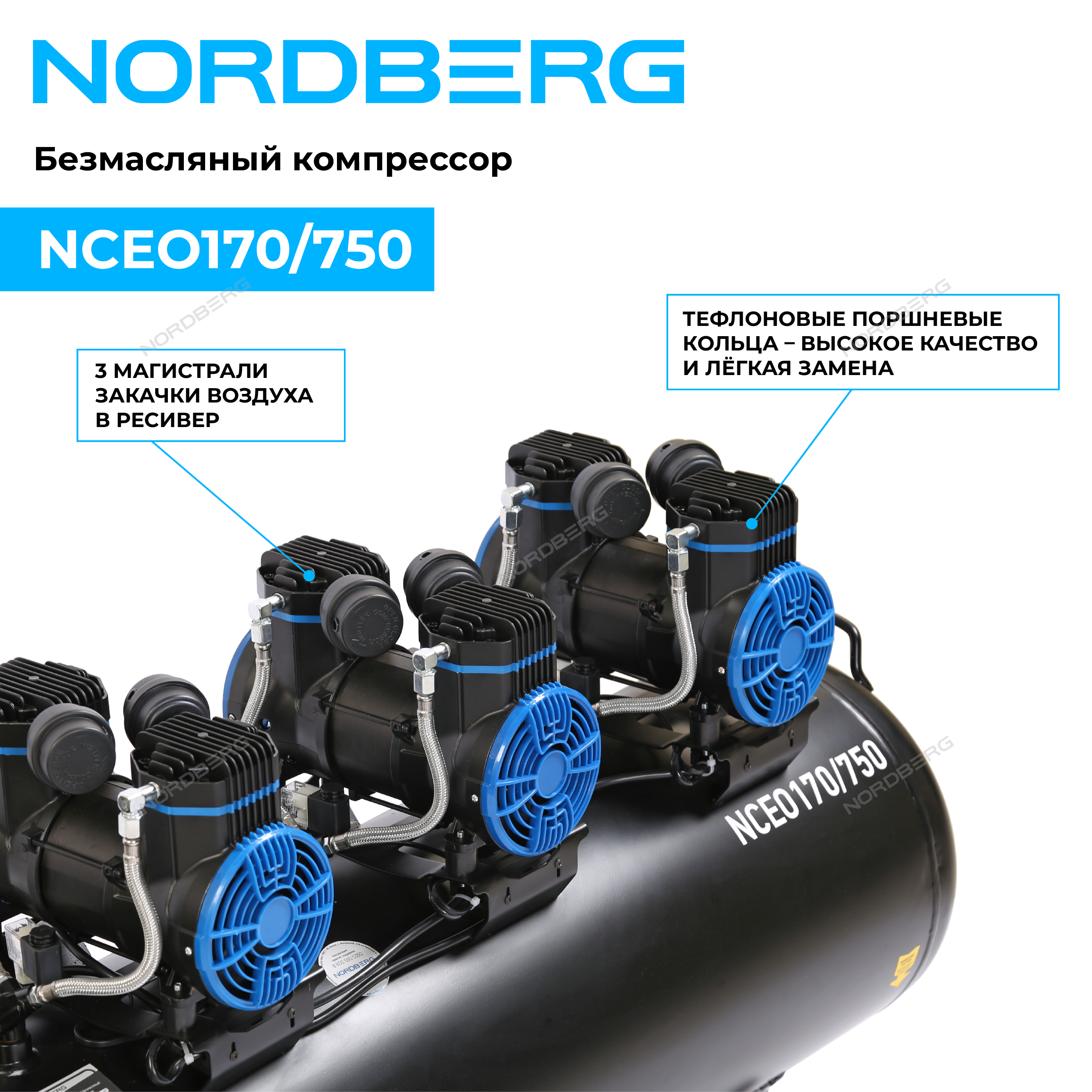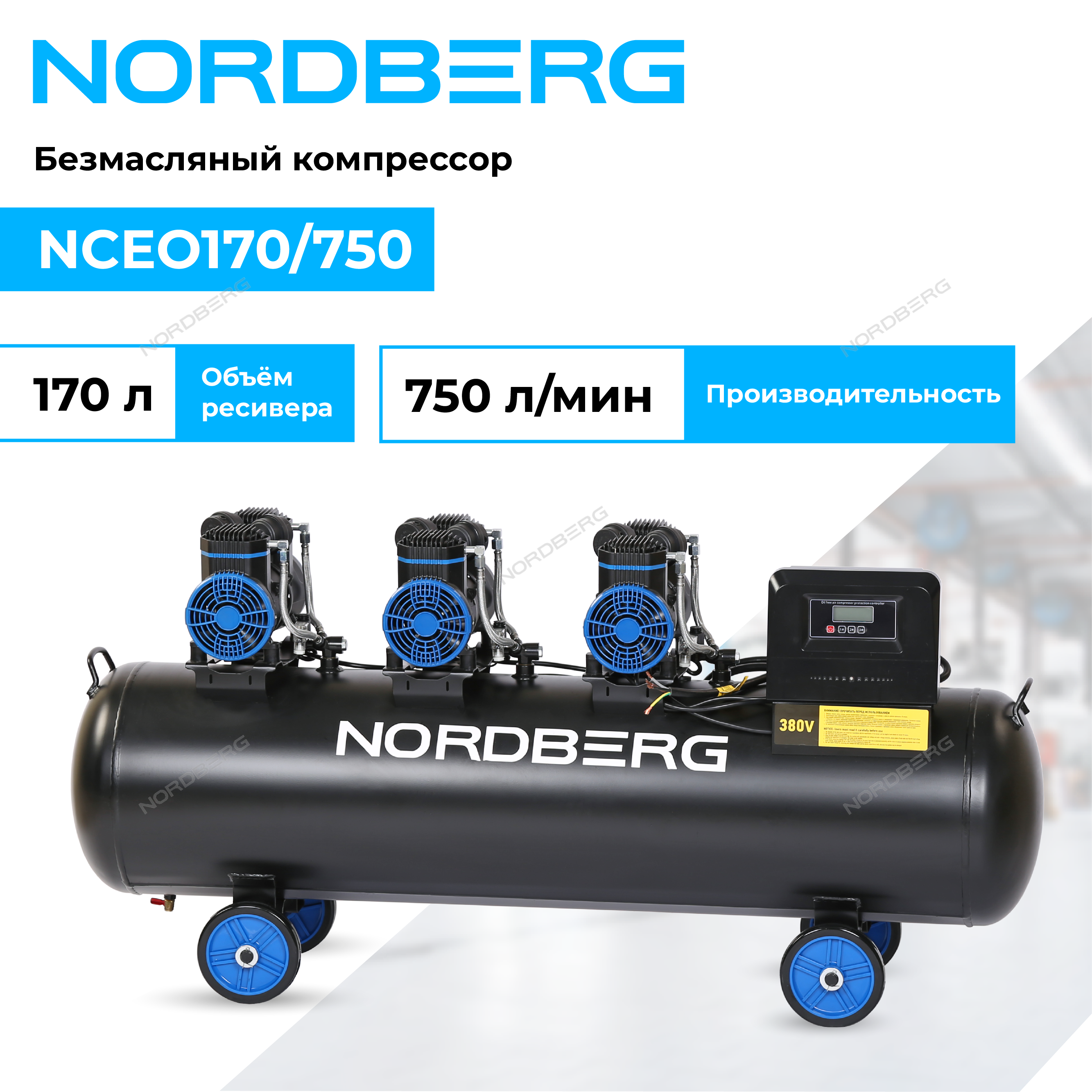 Безмасляный компрессор NORDBERG NCEO170/750 – промышленное оборудование для станций технического обслуживания, автотранспортных и производственных предприятиях.