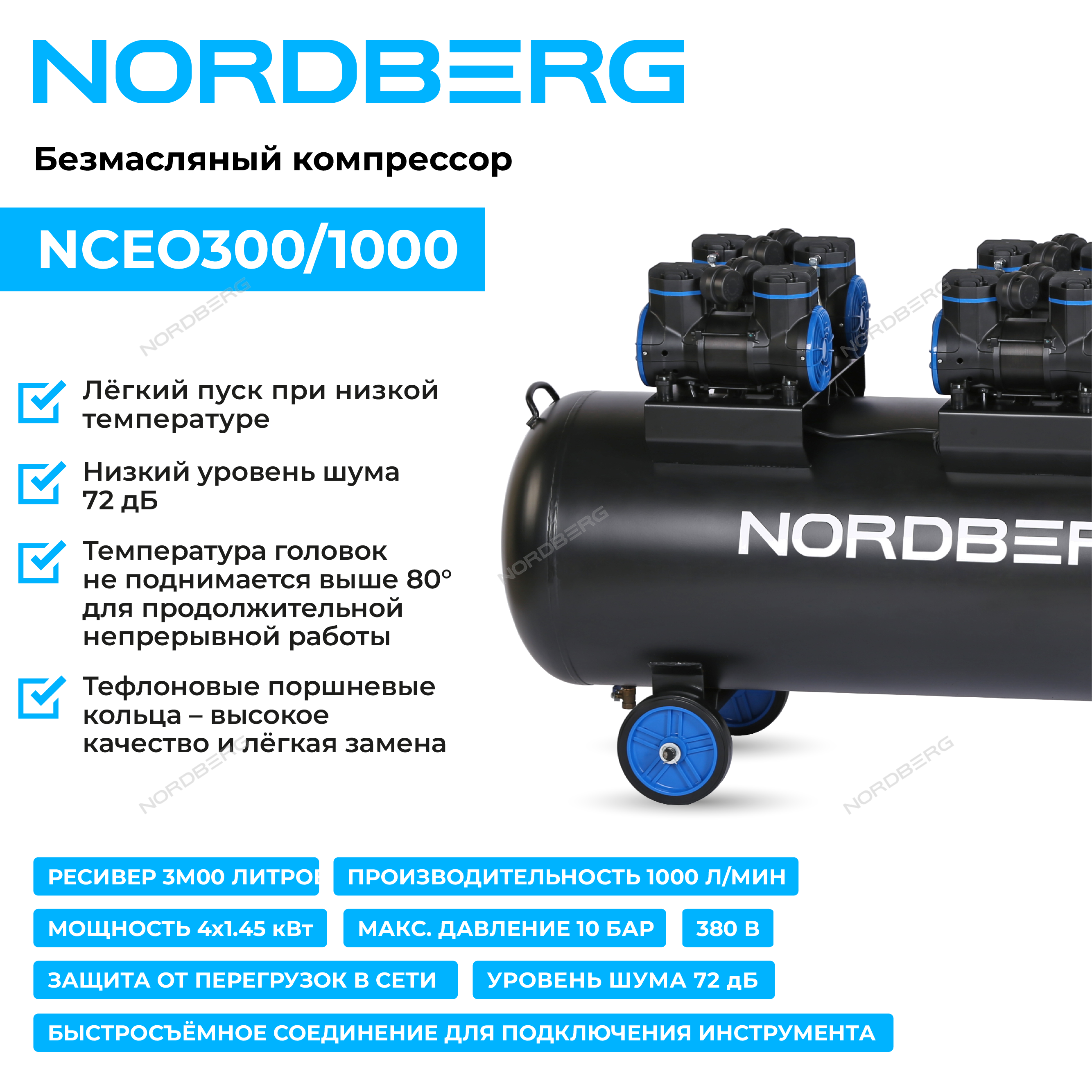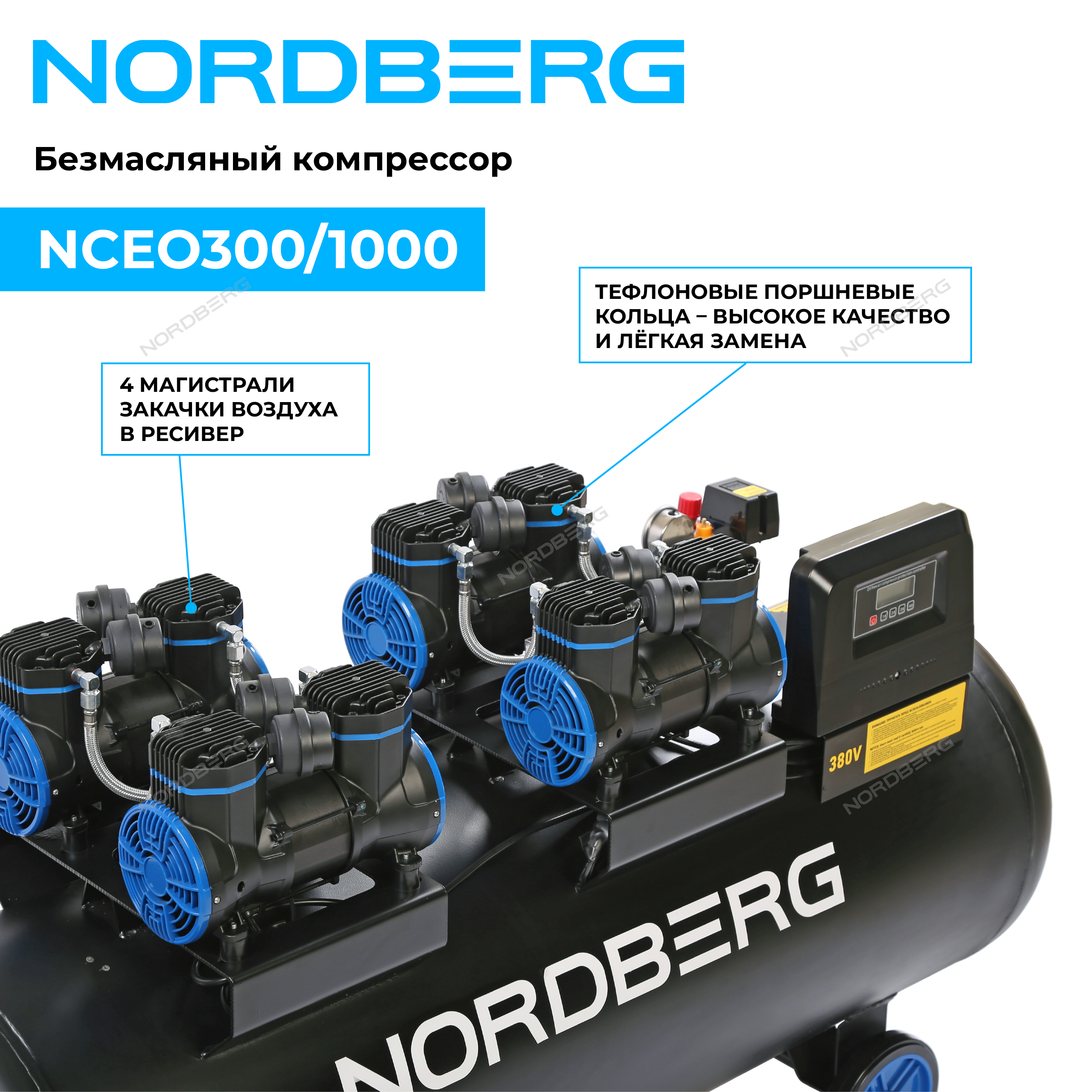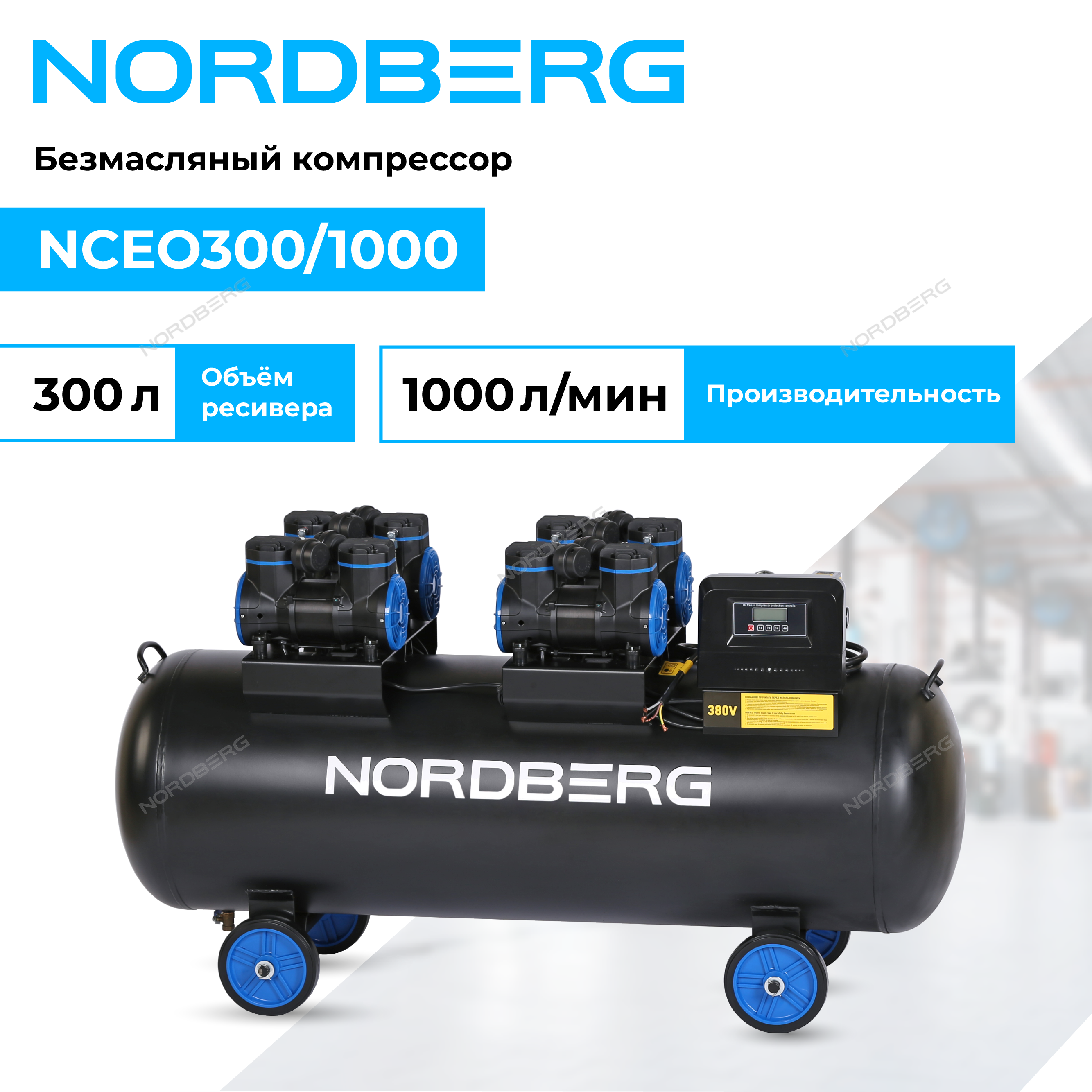 Безмасляный компрессор NORDBERG NCEO300/1000 – промышленное оборудование для станций технического обслуживания, автотранспортных и производственных предприятиях.
