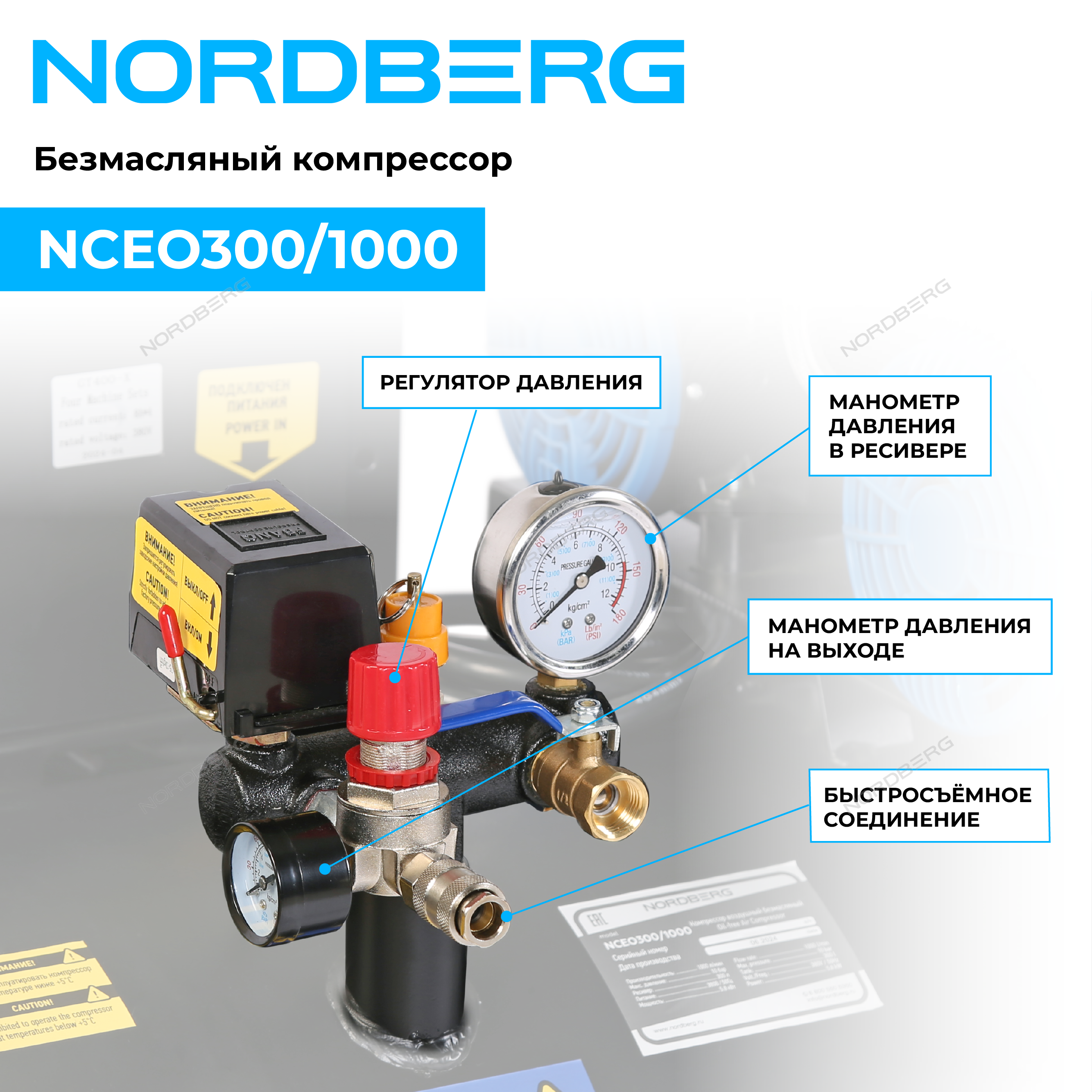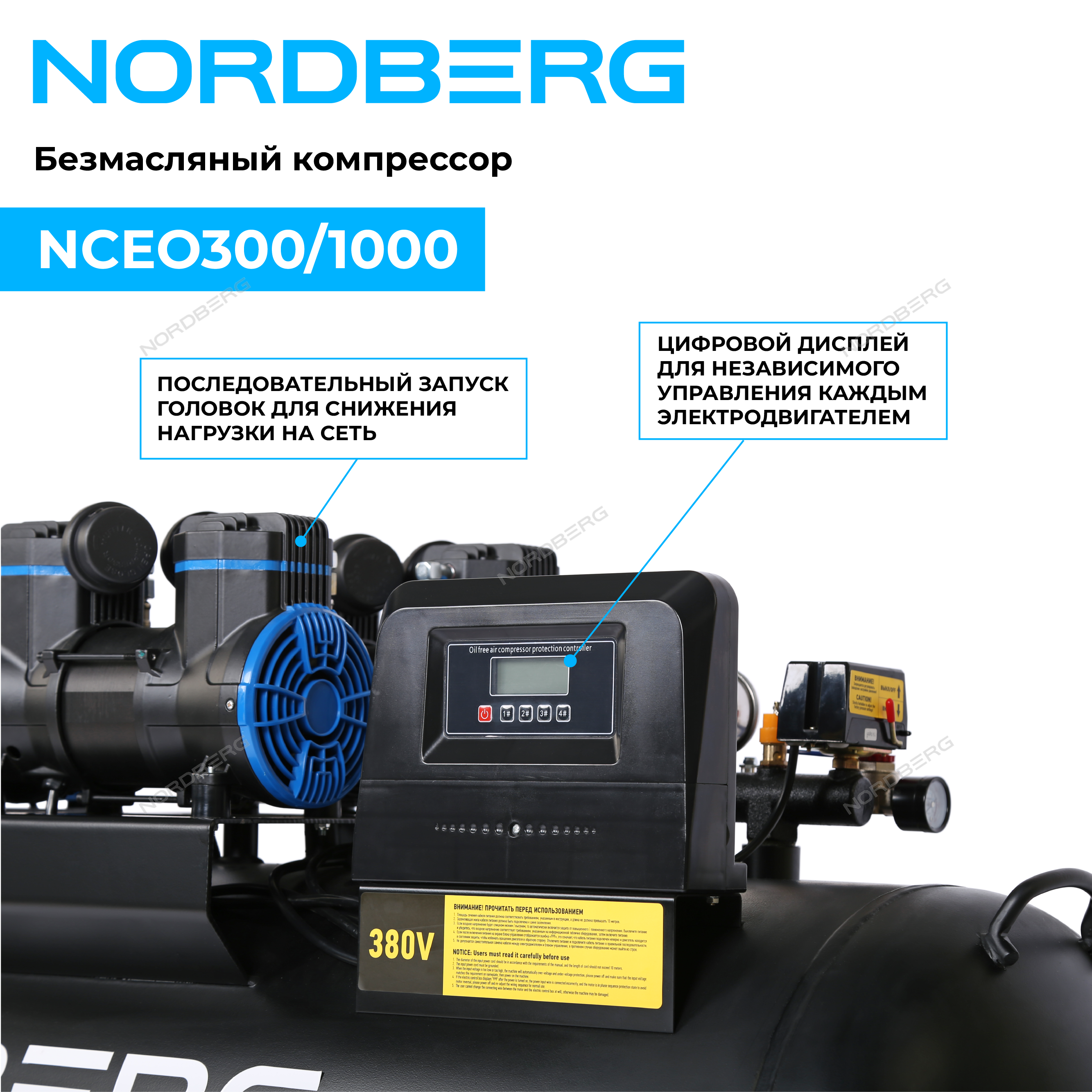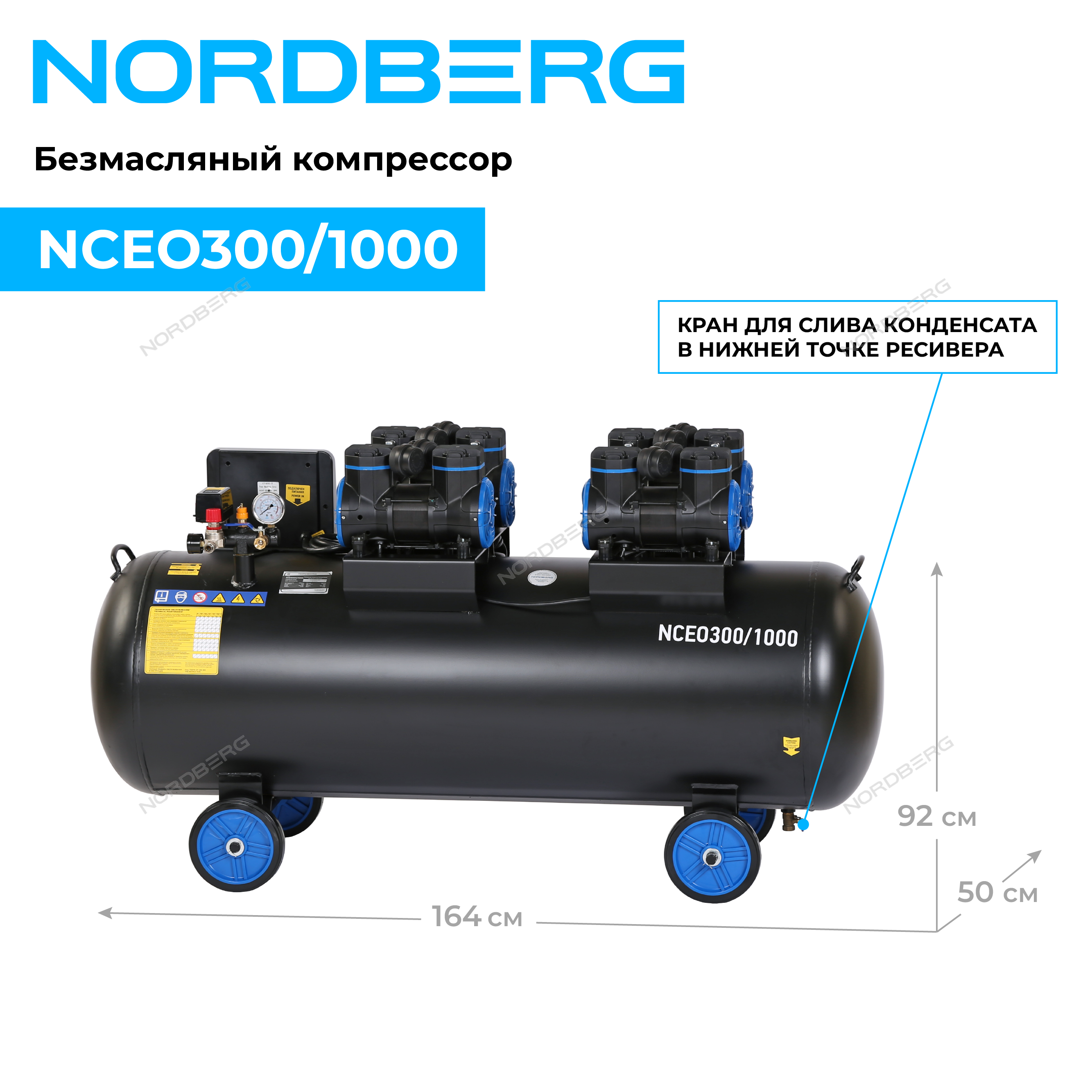 Безмасляный компрессор NORDBERG NCEO300/1000 – промышленное оборудование для станций технического обслуживания, автотранспортных и производственных предприятиях.