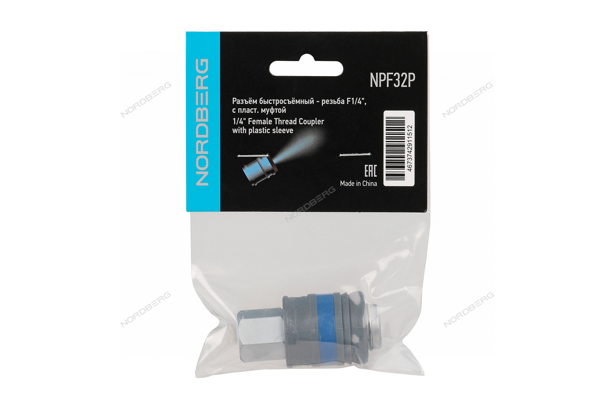 Разъем "мама" быстросъемный с пластиковой муфтой NORDBERG NPF32P с присоединительным размером внутренней резьбы 1/4".