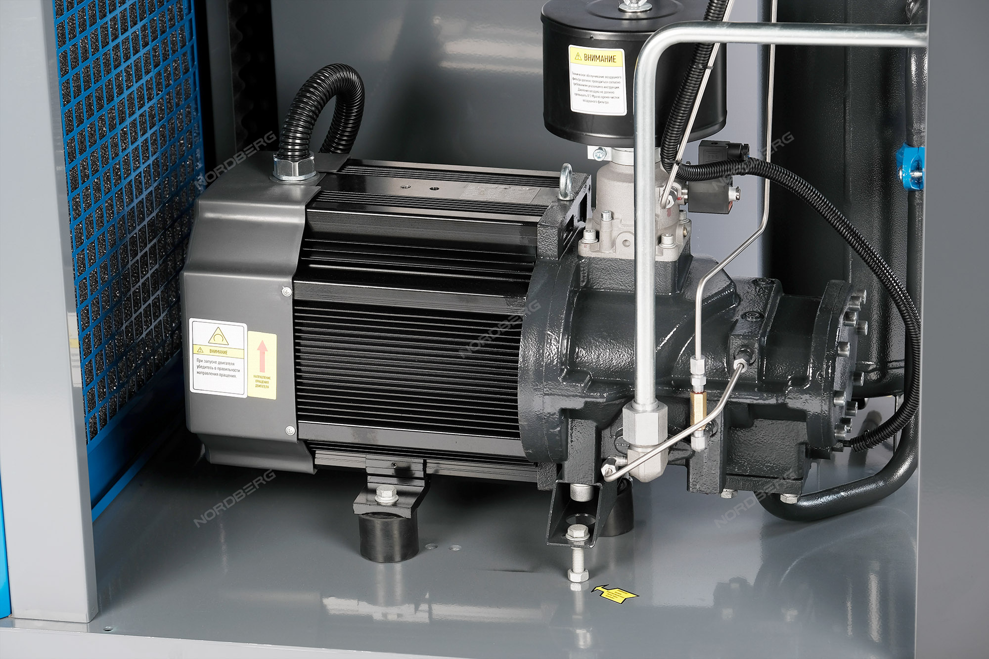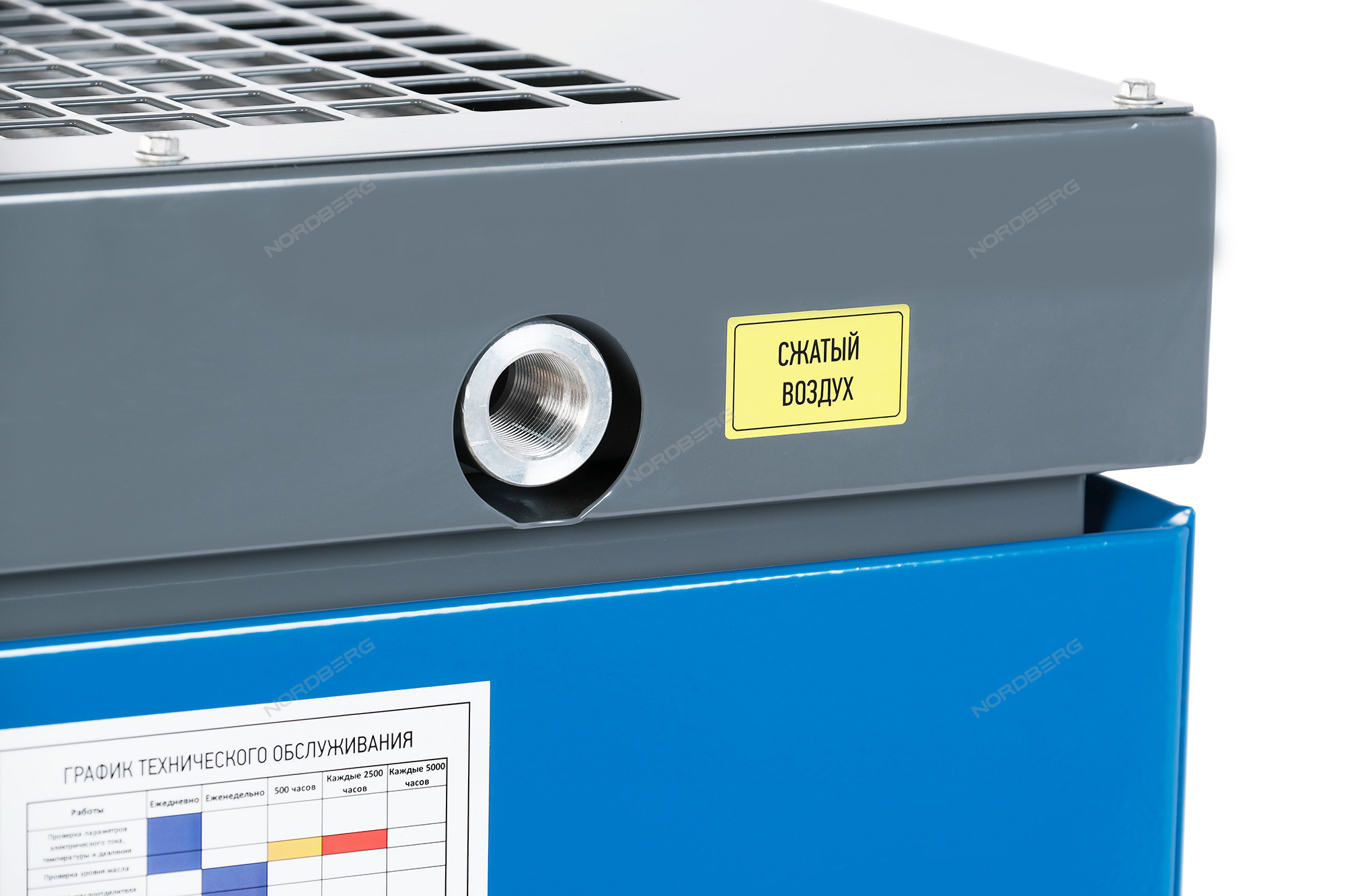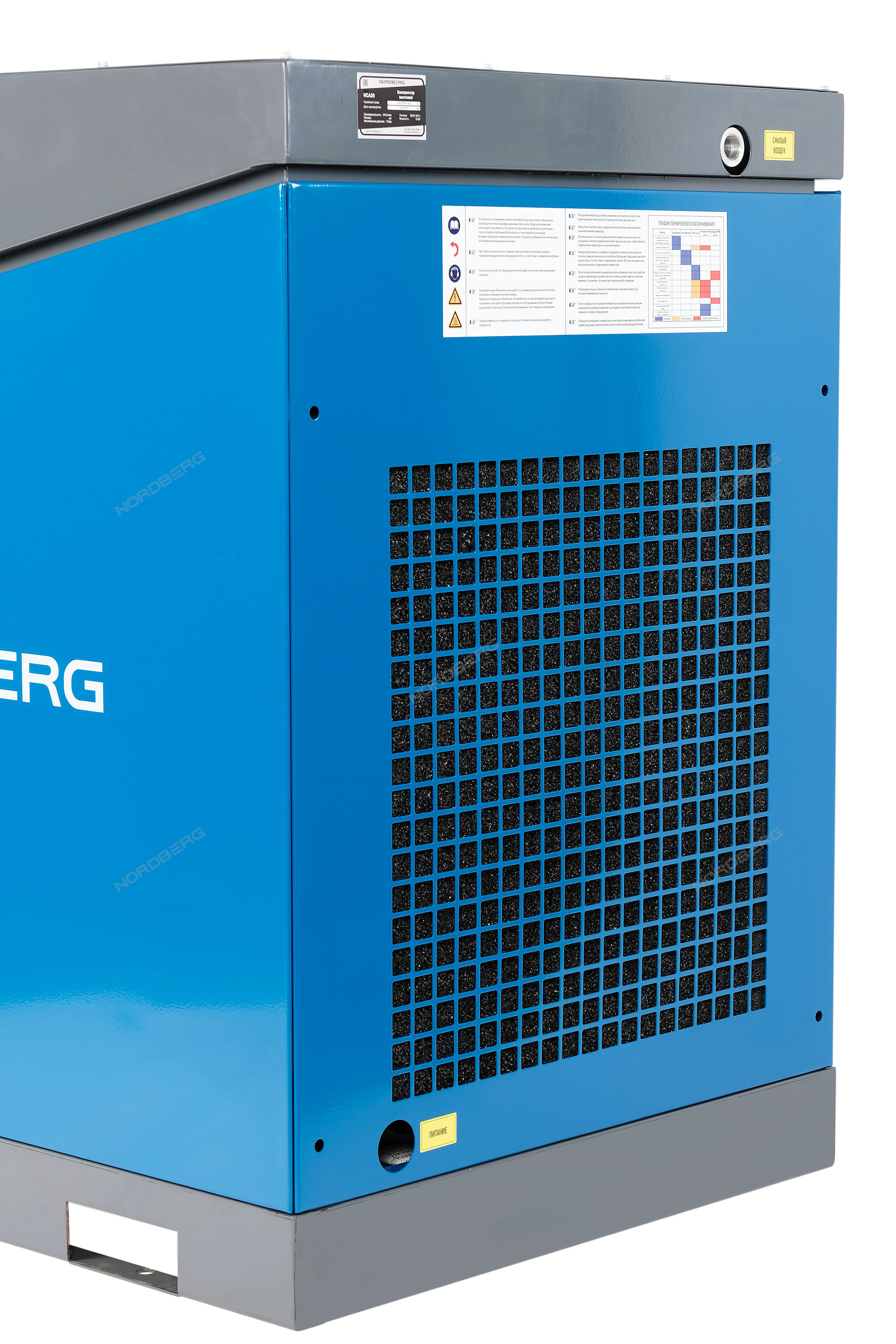 Расширенная гарантия (3 года) на винтовой блок и электродвигатель действует при обслуживании в авторизированными сервисами NORDBERG