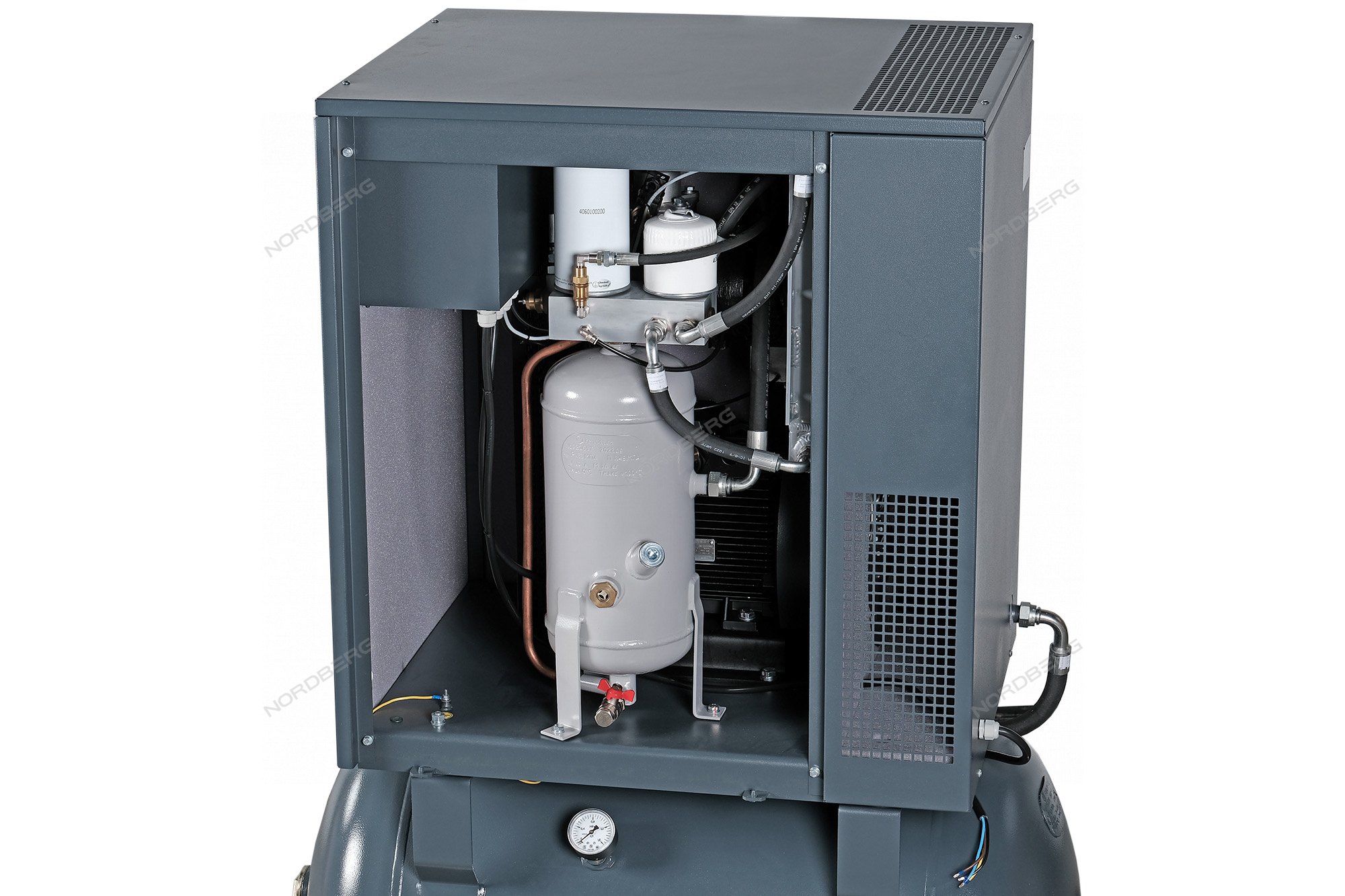 Несущественный нагрев воздуха при работе минимизирует выпад конденсата, а встроенные рефрижераторный осушитель обеспечивает полное отсутствие влаги