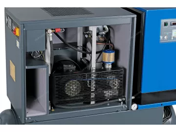 Несущественный нагрев воздуха при работе минимизирует выпад конденсата, а встроенные рефрижераторный осушитель обеспечивает полное отсутствие влаги