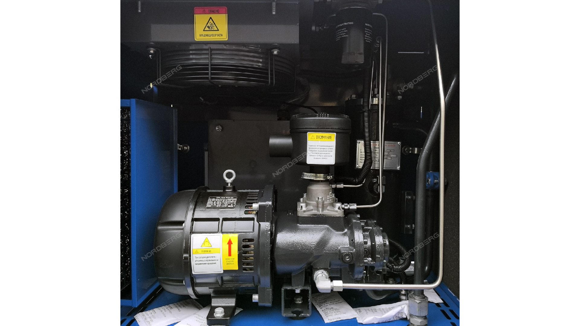 Класс защиты электродвигателя IP23 предохраняет от влаги и частиц пыли, позволяет использовать компрессор в закрытых помещениях и продлевает его срок службы