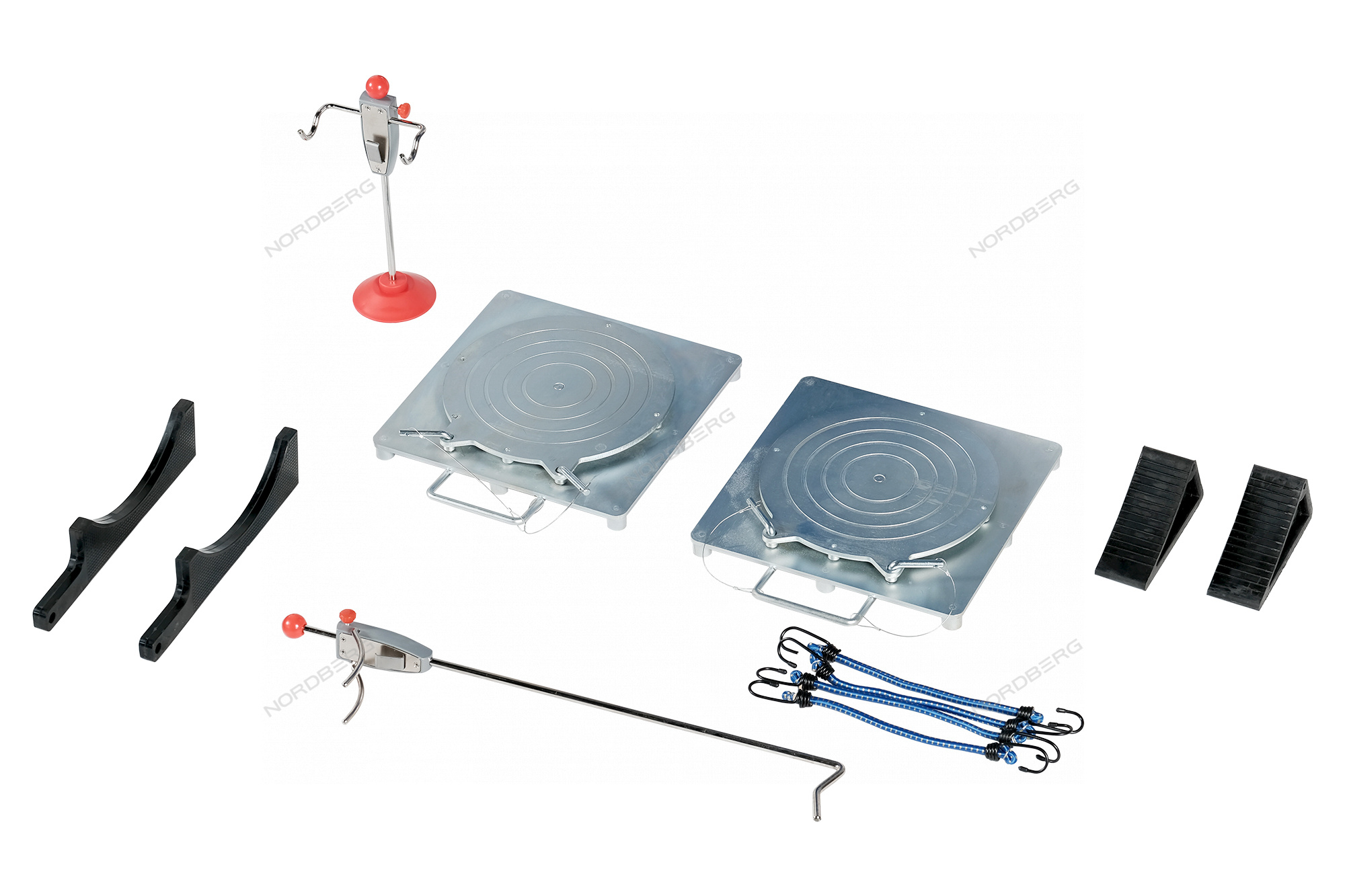 Набор для крепления колесных адаптеров и мишеней к колонне для хранения.